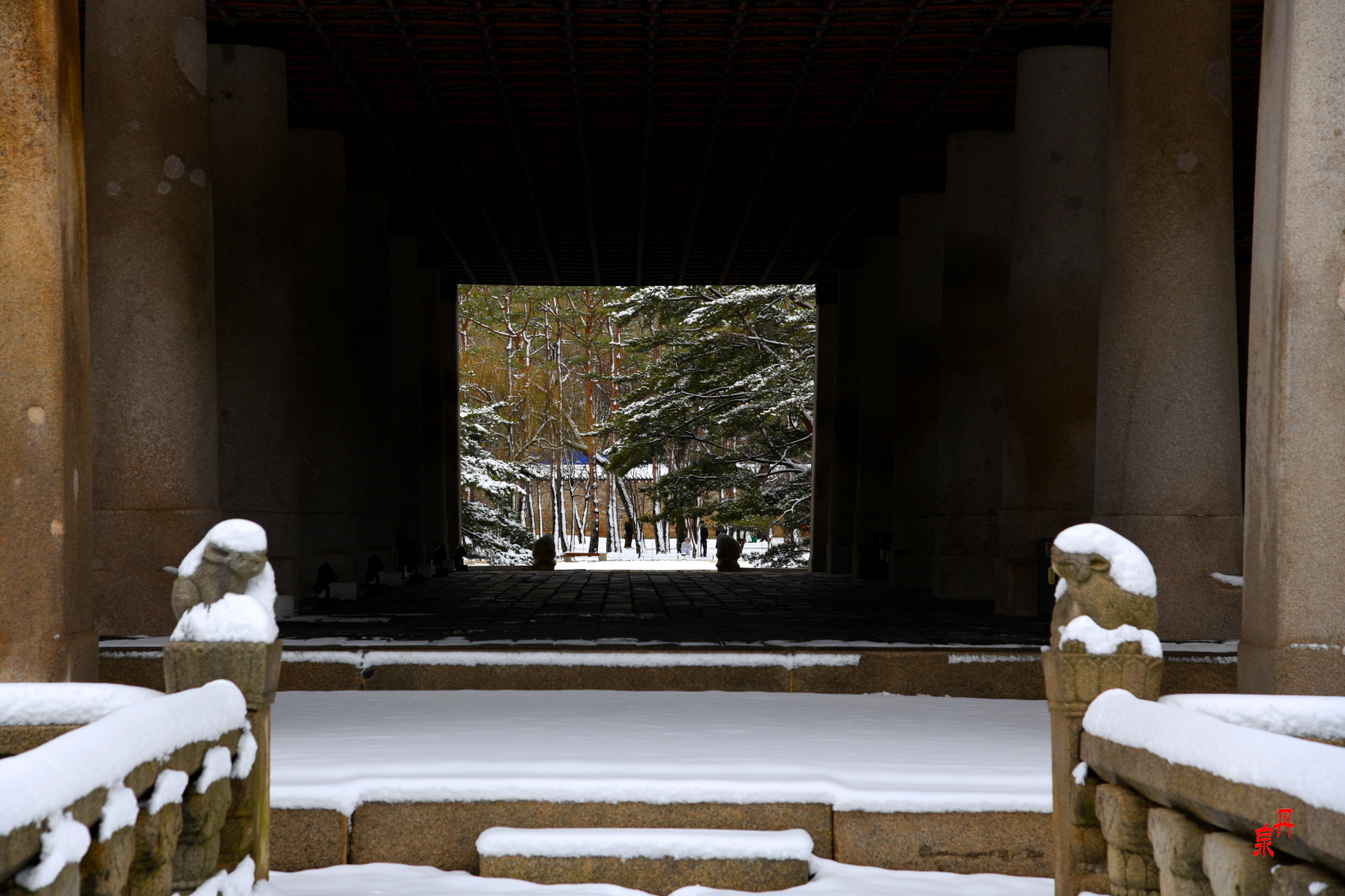 경회루 해태 초병들은 추운 날씨에도 근무 중 이상무