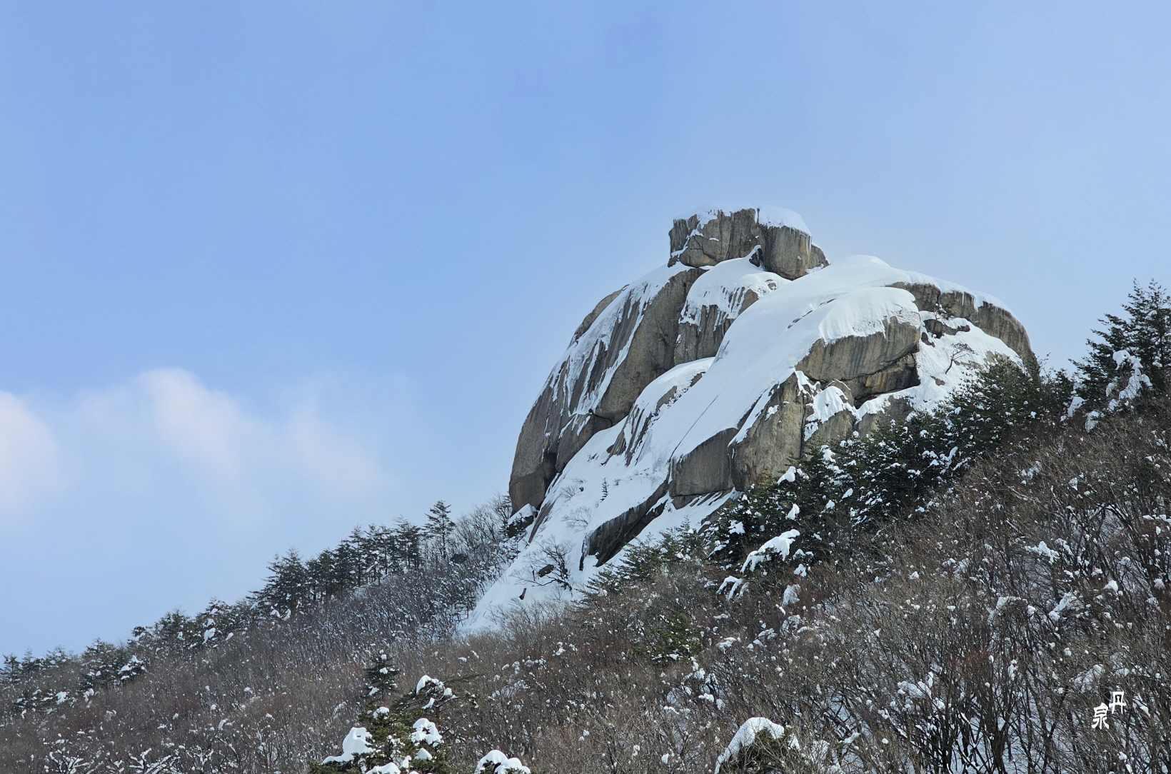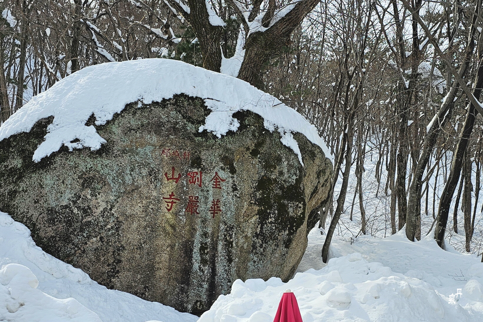 이 바위 옆으로 성인대로 오르는 등산로가 있는데 폭설로 입산금지이다