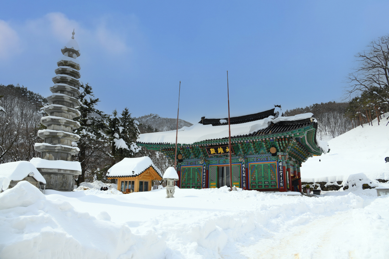 대웅전 마당에도 눈이 가득하다