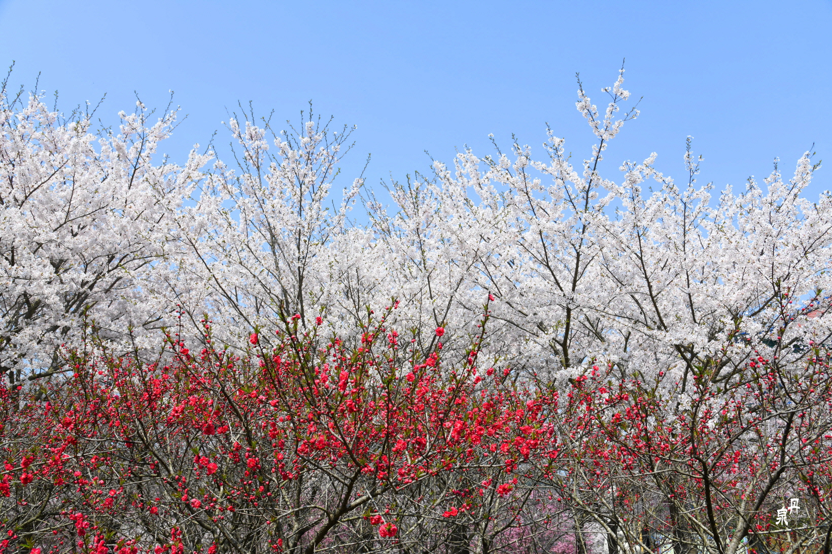 겹동백꽃과 어우러진 하얀 벚꽃 분홍 벚꽃 그리고 목련화도 보인다