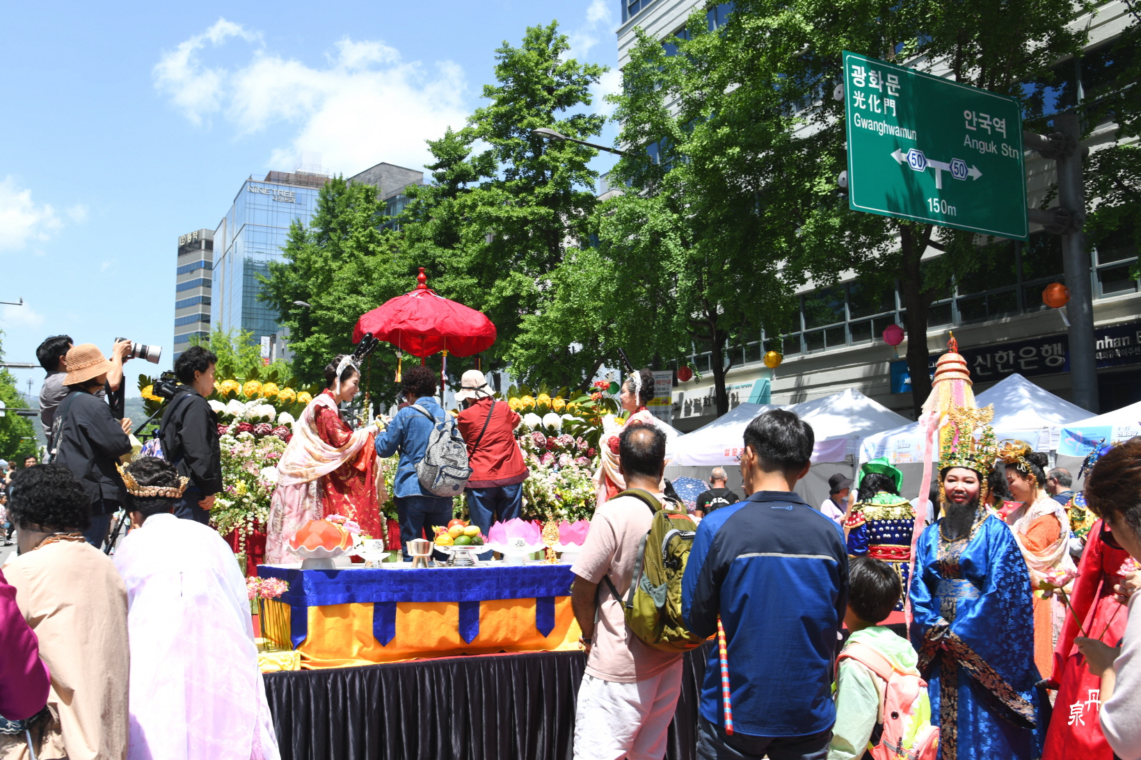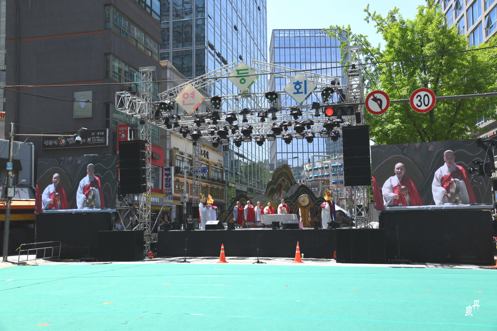 조계사 앞 우정국로를 교통통제하고 행사를 하여 많은 사람들이 도로에서 즐거운 시간을 보냈다