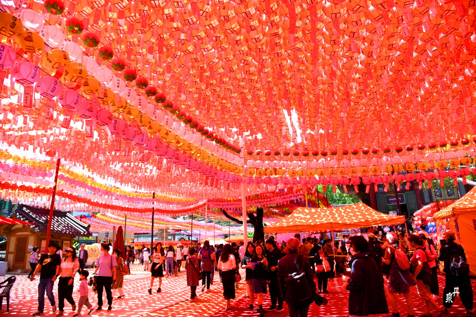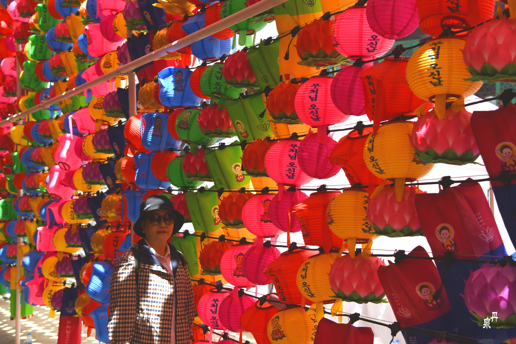 외국인 여성은 극락왕생의 의미를 알고 연가등 앞에서 포즈를 취하는 걸까
