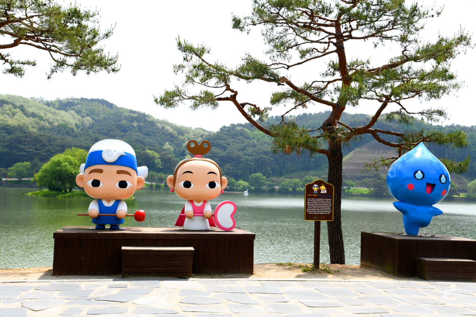 제천 마스코트 경상도 청년 박달도령과 충청도 처녀 금봉남자 인형 옆에는 의림지를 대표하는 물의 요정 방울이