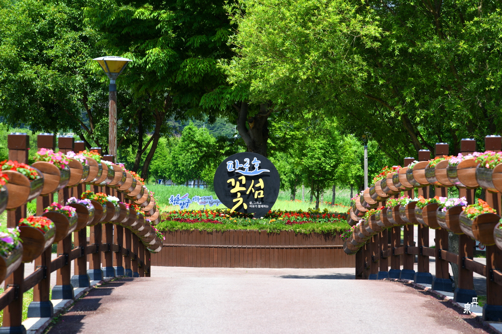 강원도 양구 파로호에 예쁜 꽃을 가꾸어 놓은 파로호꽃섬이 있다