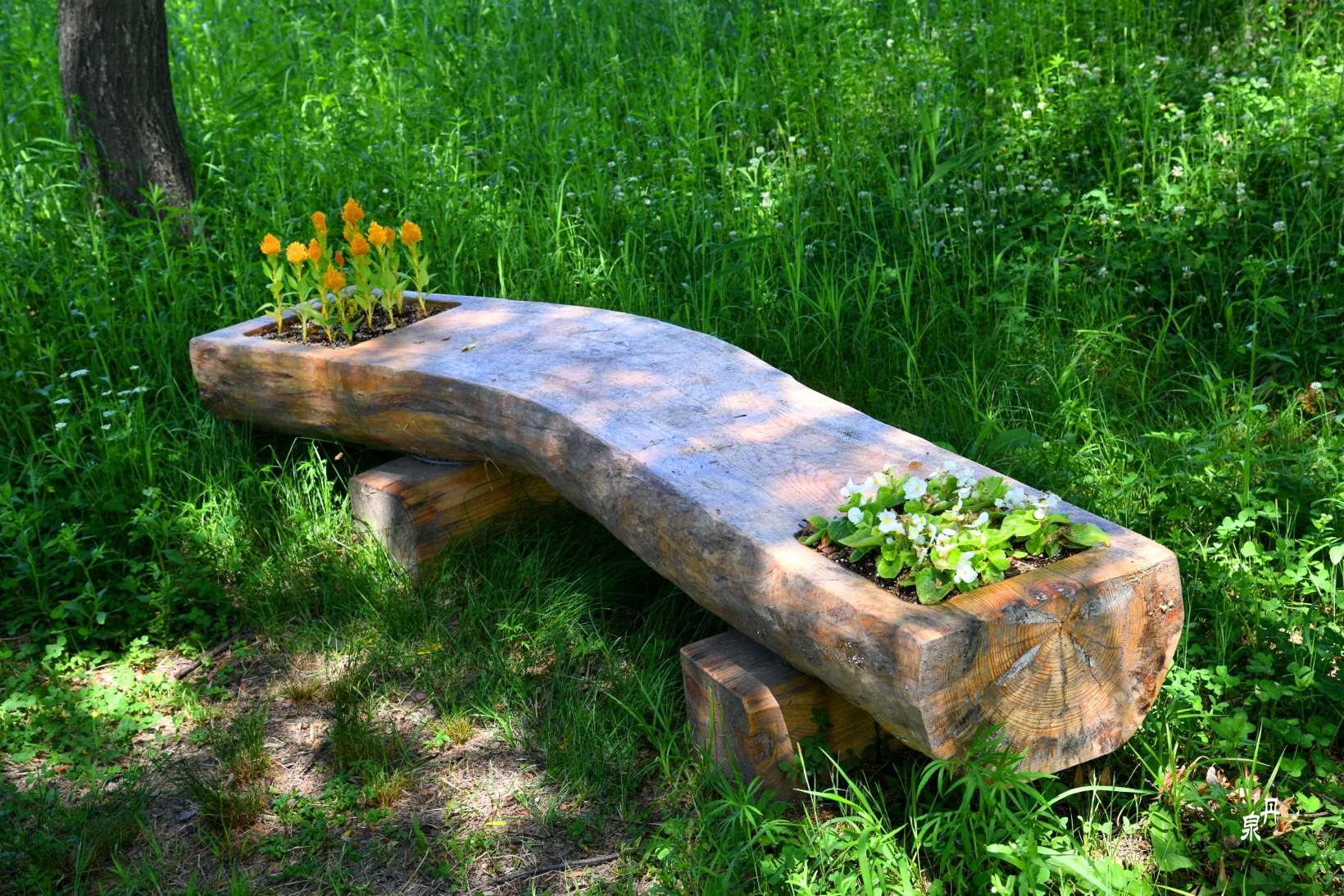 숲 속에 나무 의자와 테이블이 괜찮다 좋은 아이디어