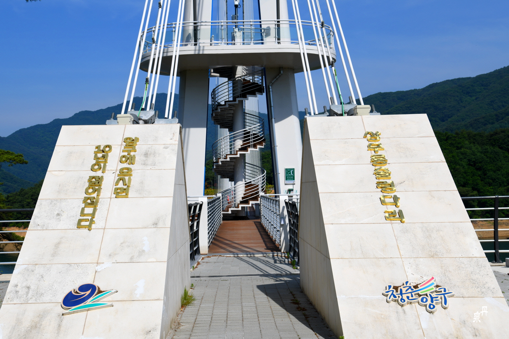 회전계단을 올라 전망대에 오르면 파로호를 보는 경치가 시원하고 좋다