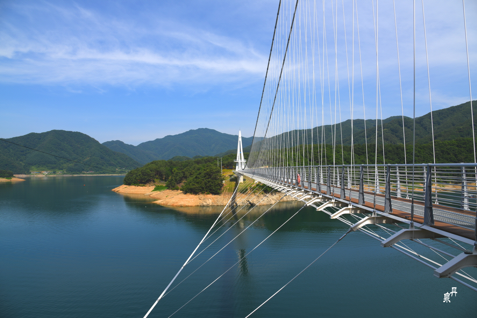 130억 원을 들여 다리를 만들었다는데 차는 건널 수 없는 출렁다리이니 관광 목적이 더 크지 않았을까 한다