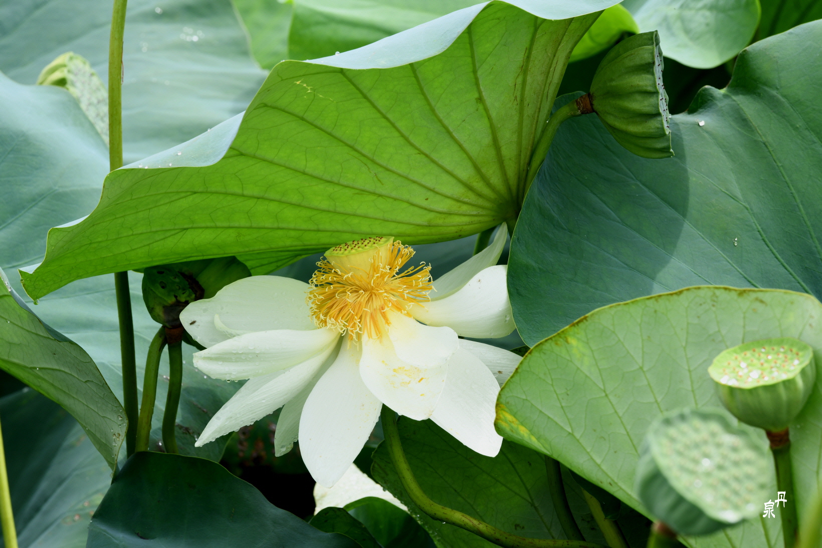 하얀 연꽃은 비를 맞기가 싫은가 보다