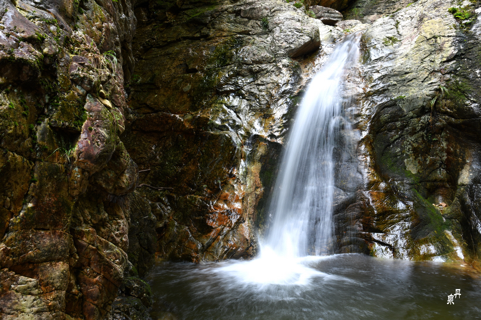 기암괴석들이 늘어 선 협곡 속에 폭포가 있다