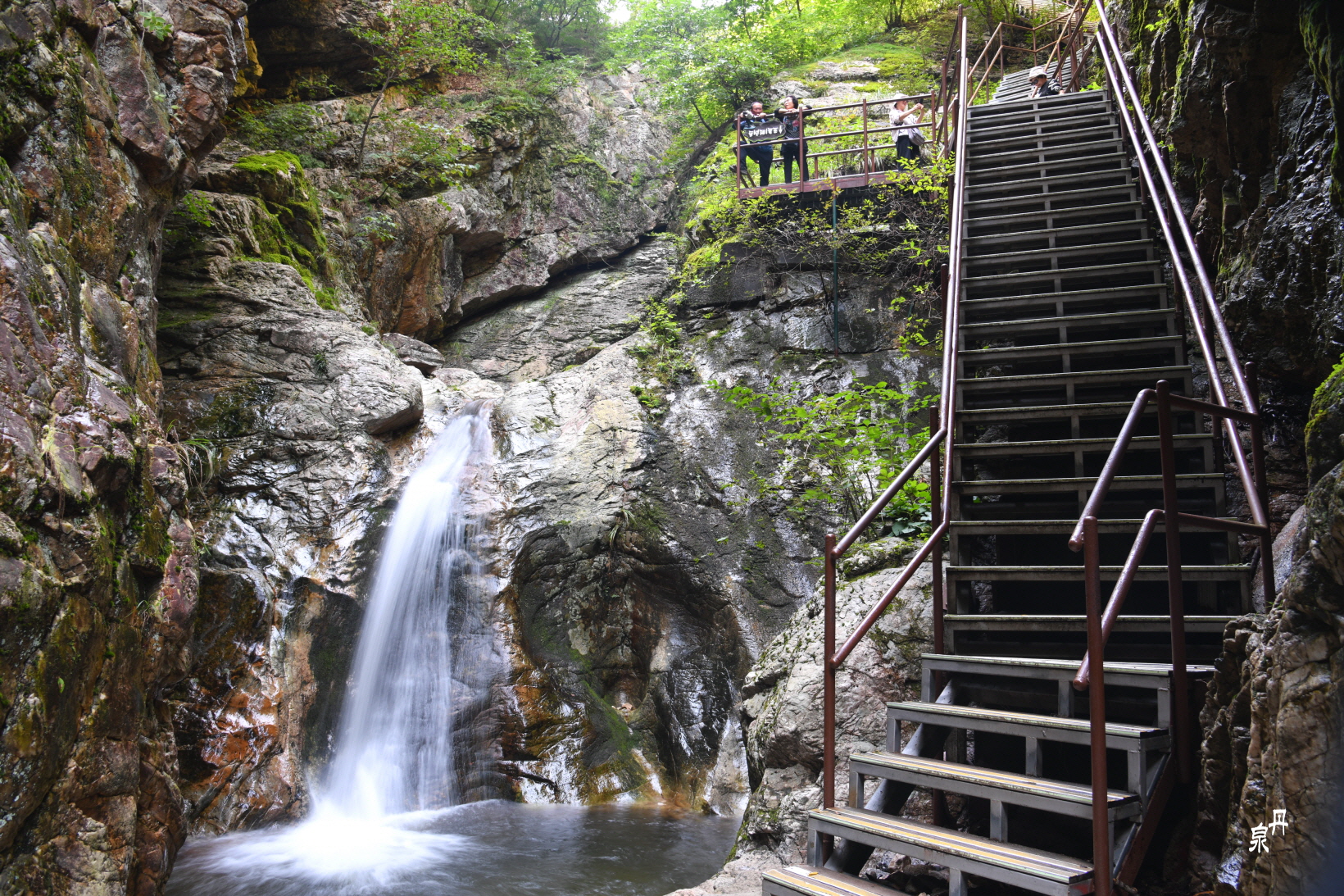 철계단 중턱에서 보이는 물줄기
