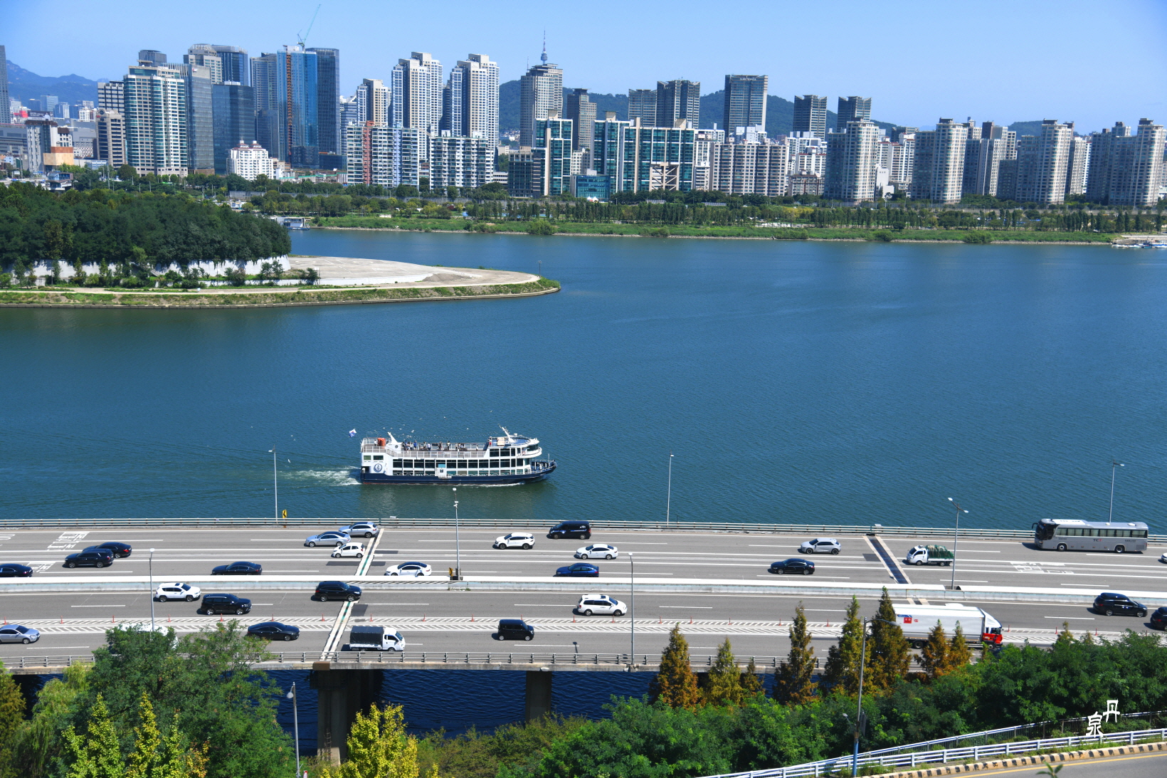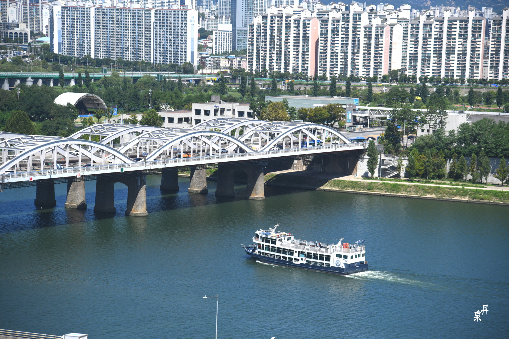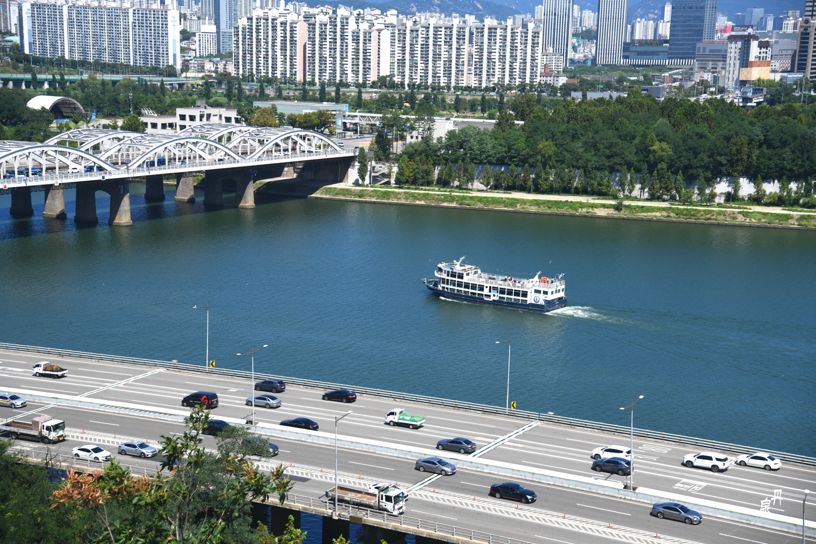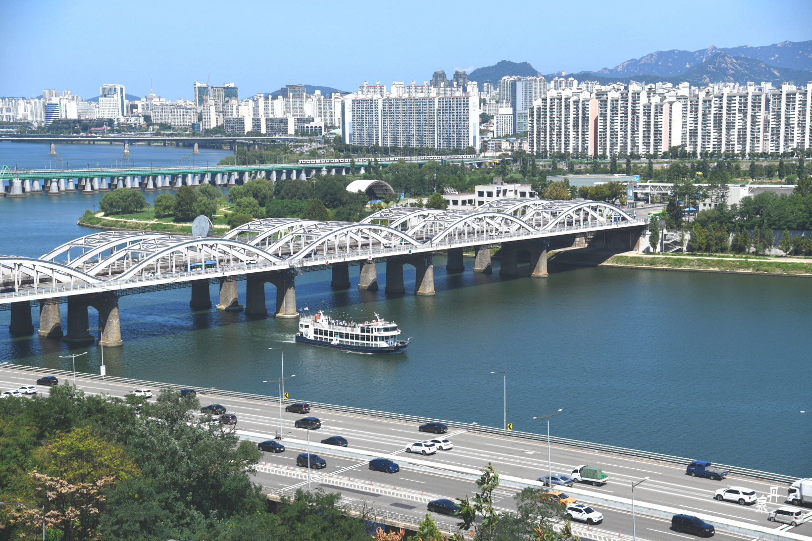 한강철교 아래에는 유람선이 다니고