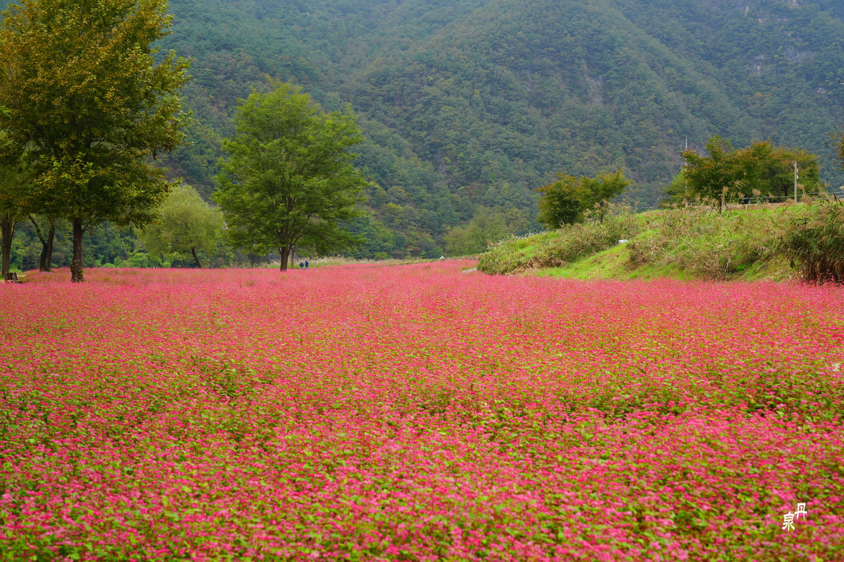 강원도 영월의 붉은 메밀꽃밭은 약 3만 명 규모로 대단지 군락을 이루고 있으며