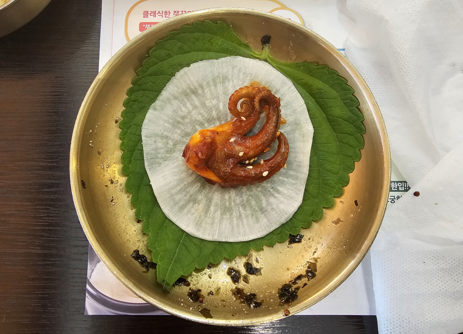 깻잎 위에 무절임 쭈꾸미를 하나 올려서 먹으니 색다를 맛을 느낄 수 있습니다