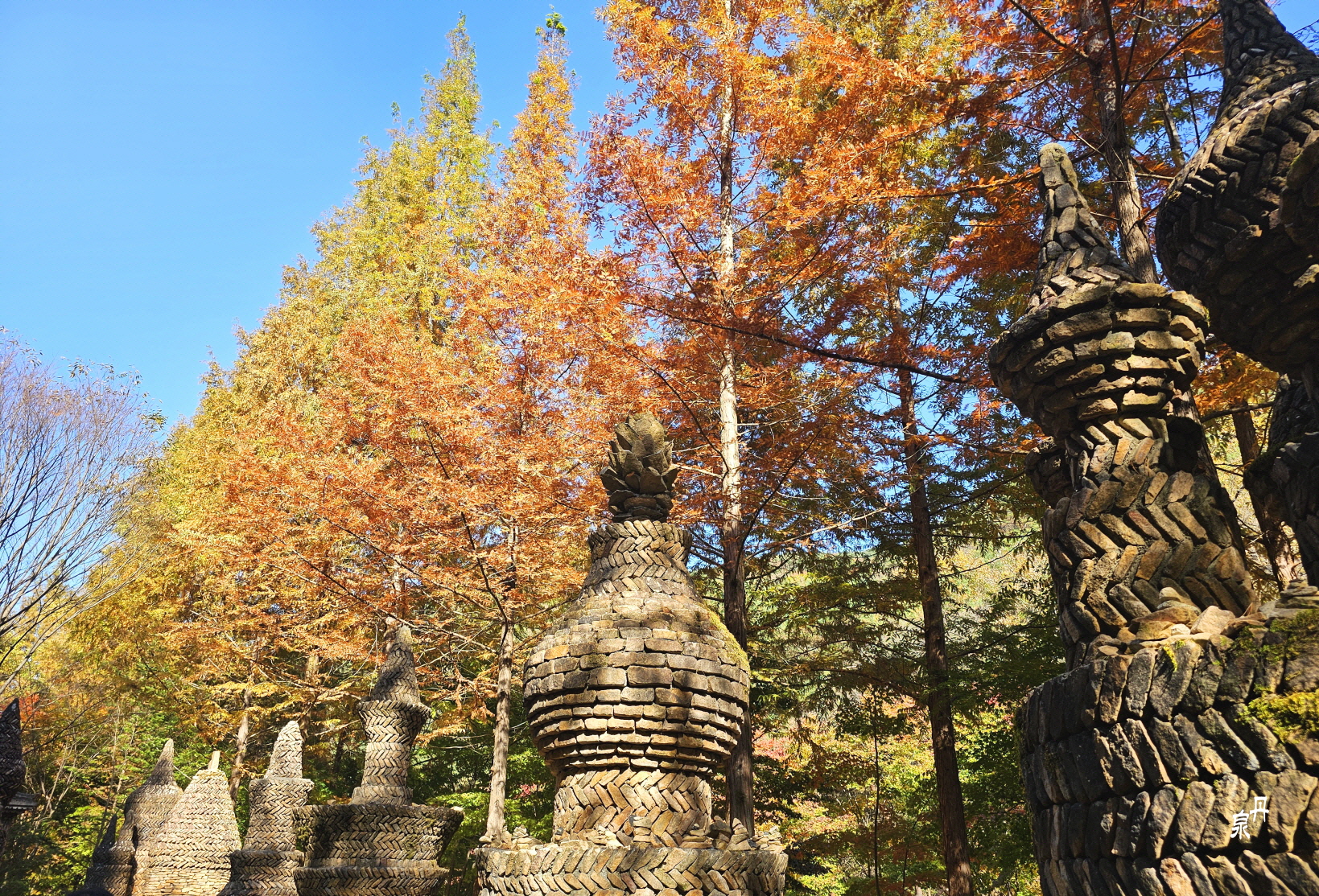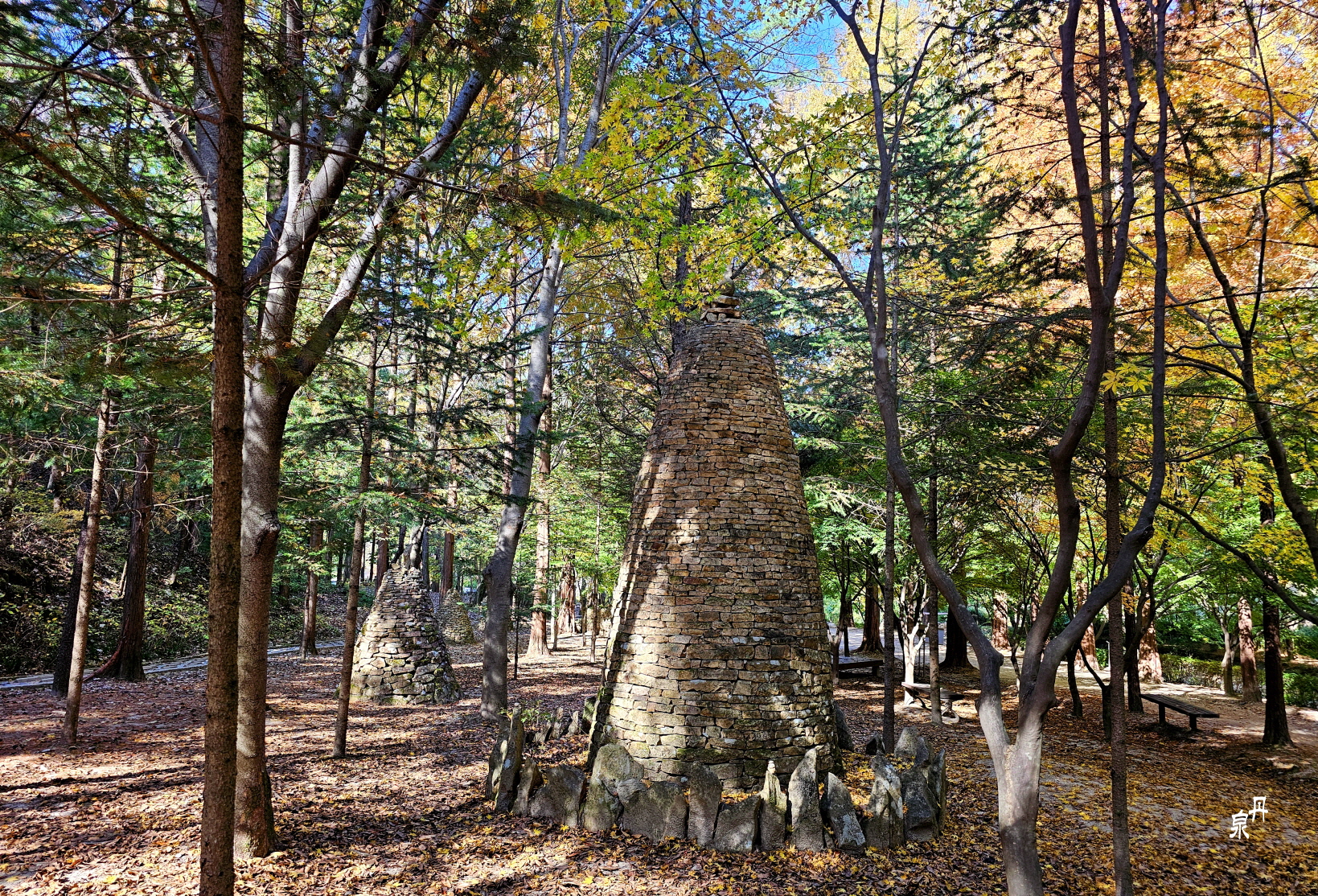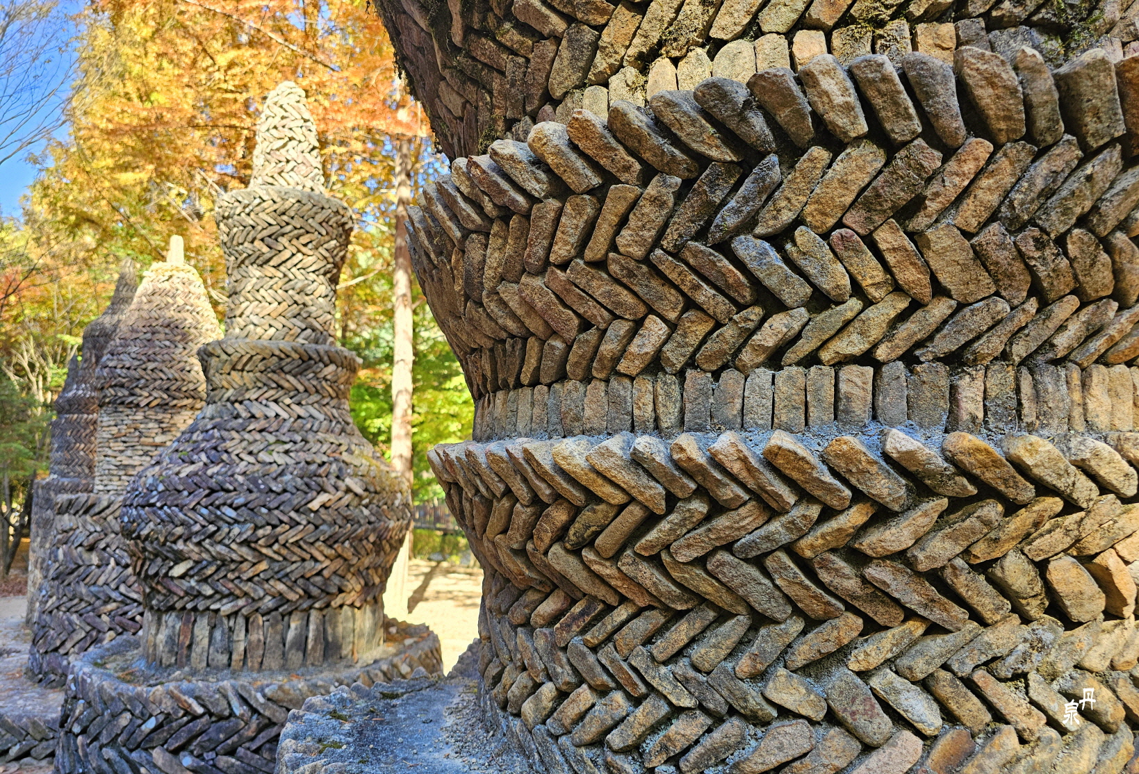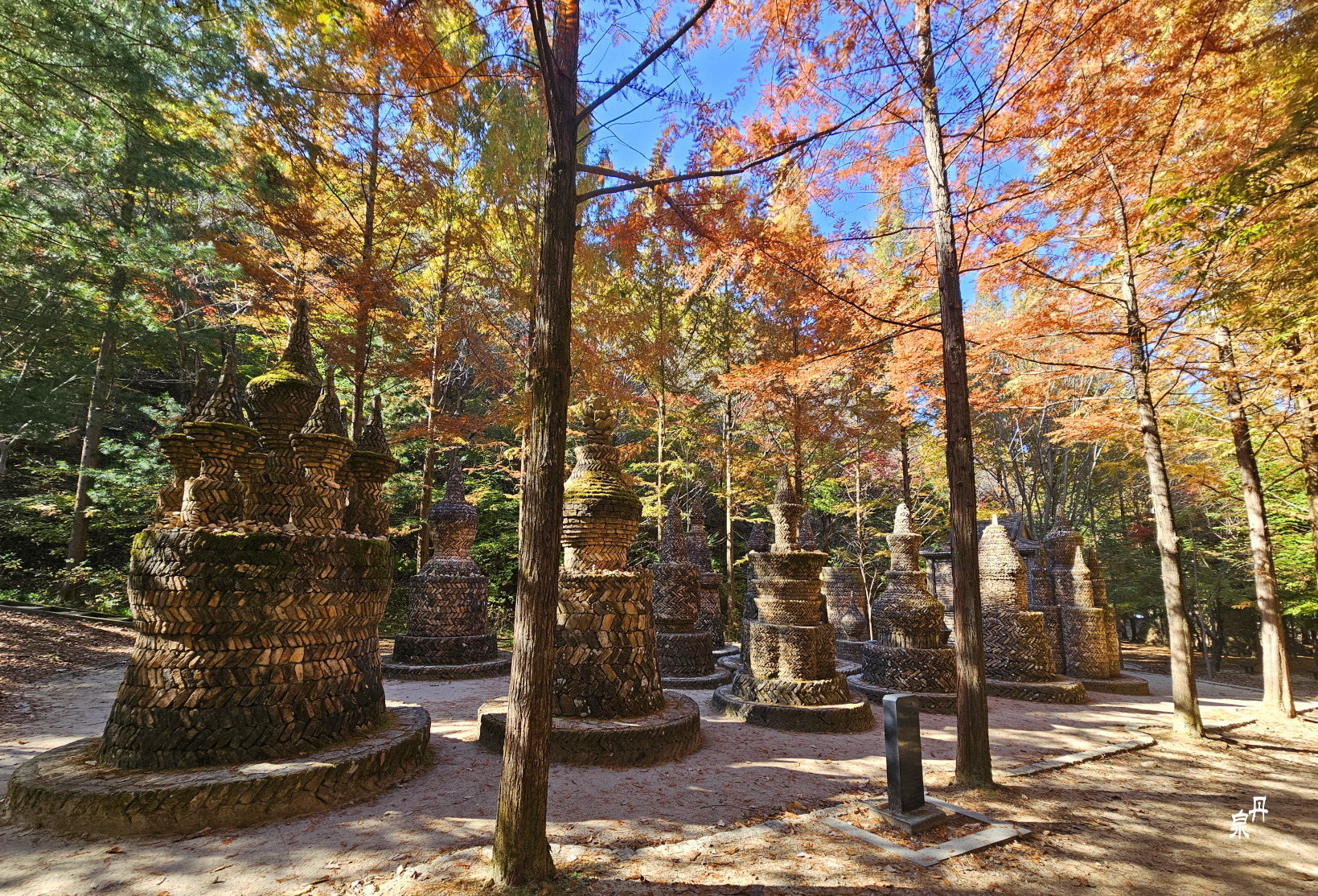 가을 단풍과 어울려 더욱 멋지게 느껴지는 돌탑 아래서