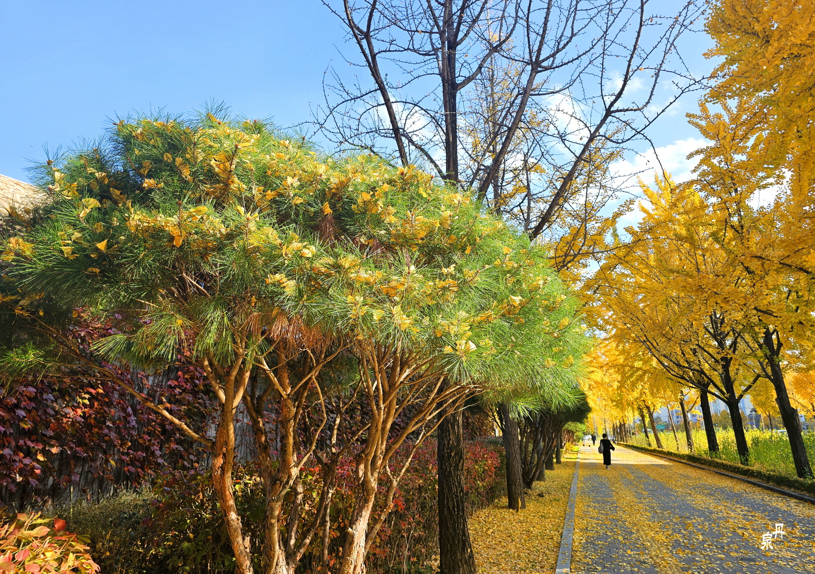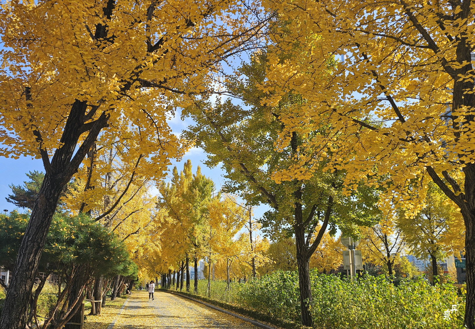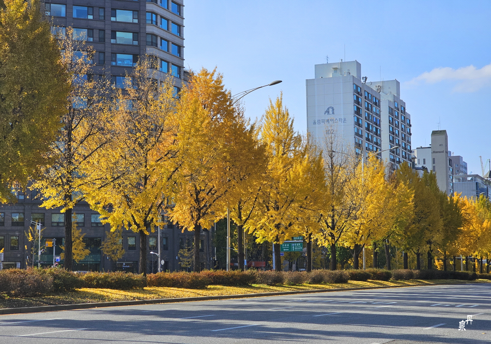 가로수가 은행나무로 식재되어 있어 가을이면 황홀한 황금색 장관을 보여주어