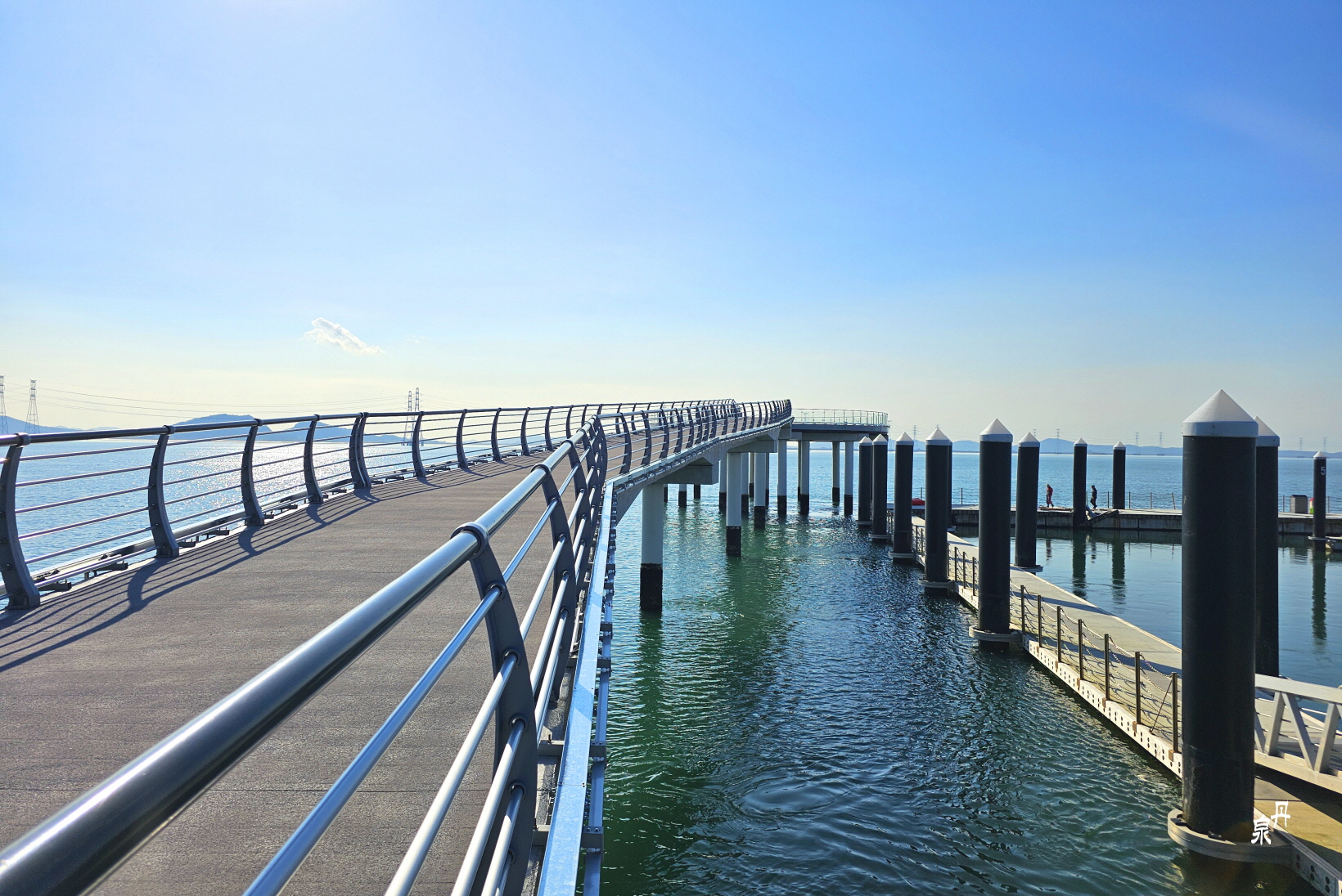 바닷가에 있는 요트정박시설을 보러 바다로 나간다