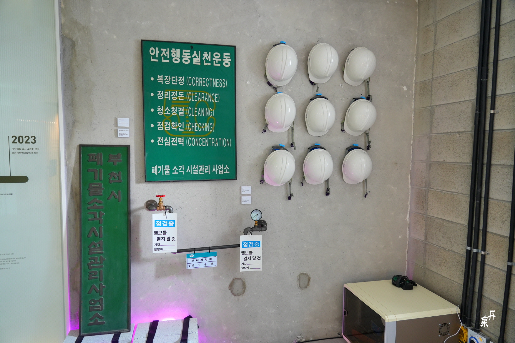 보이는 철문은 쓰레기를 실은 트럭이 저장소로 쓰레기를 투하하던 곳이다