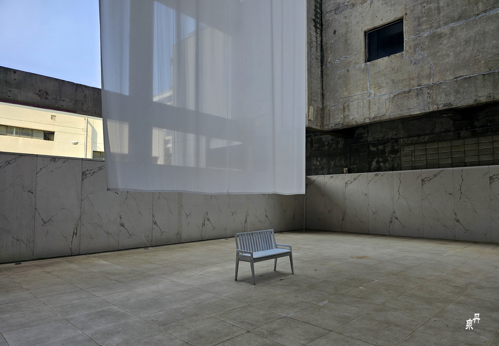 저장소 바닥에는 예술품이 설치 되어있다