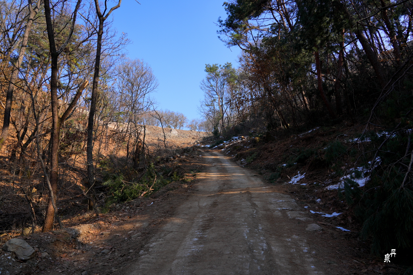 주차장에 차를 세우고 800m 정도 산길을 오르면 되는데 쉽게 보면 안 되는 경사를 가지고 있다