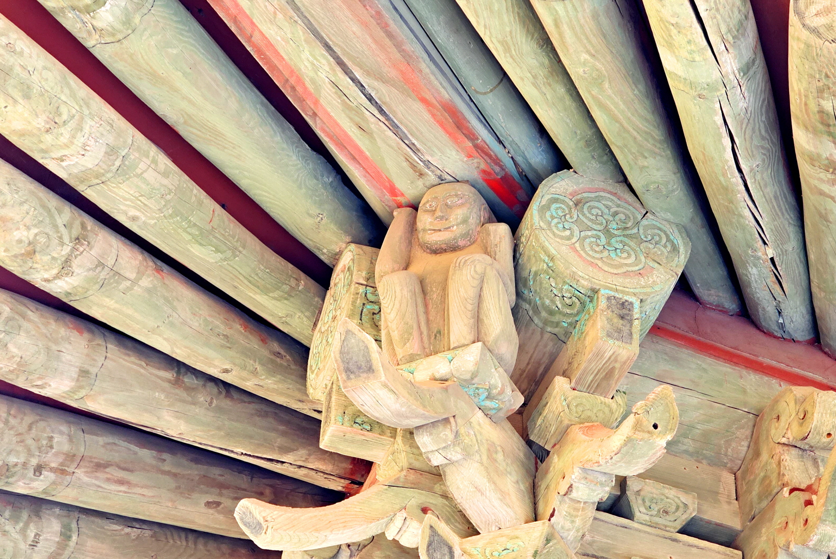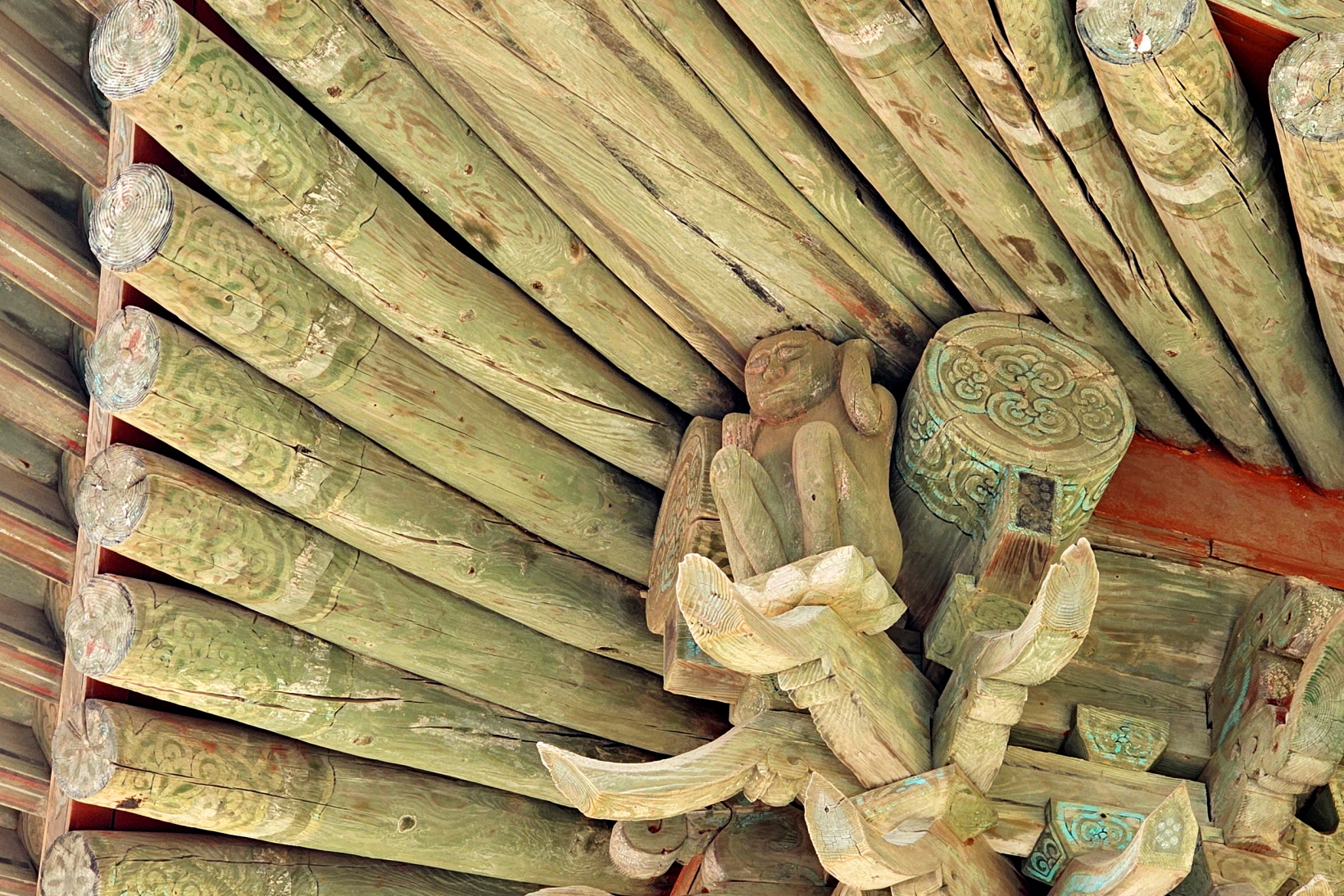 공사가 끝날 때 목수는 " 주모는 영원히 대웅전 지붕을 떠 받치면서 속죄하라"는 뜻에서 나부상을 만들어 넣었다