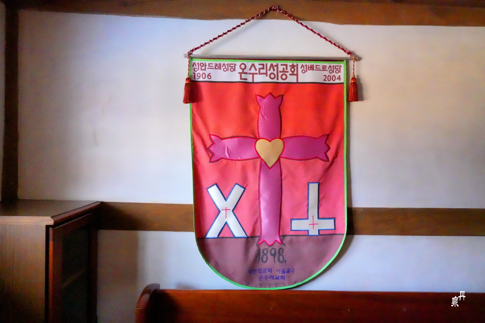 온수리 성당은 뒷산에서 소나무를 베어다 이곳에 거주하는 목수들이 나무를 다듬고 이곳 흙으로 지은 지방 토속 건물이다