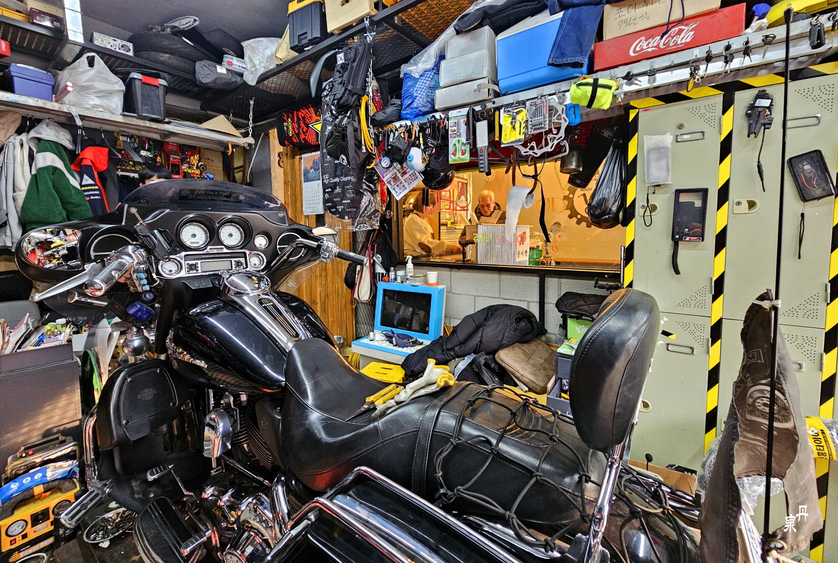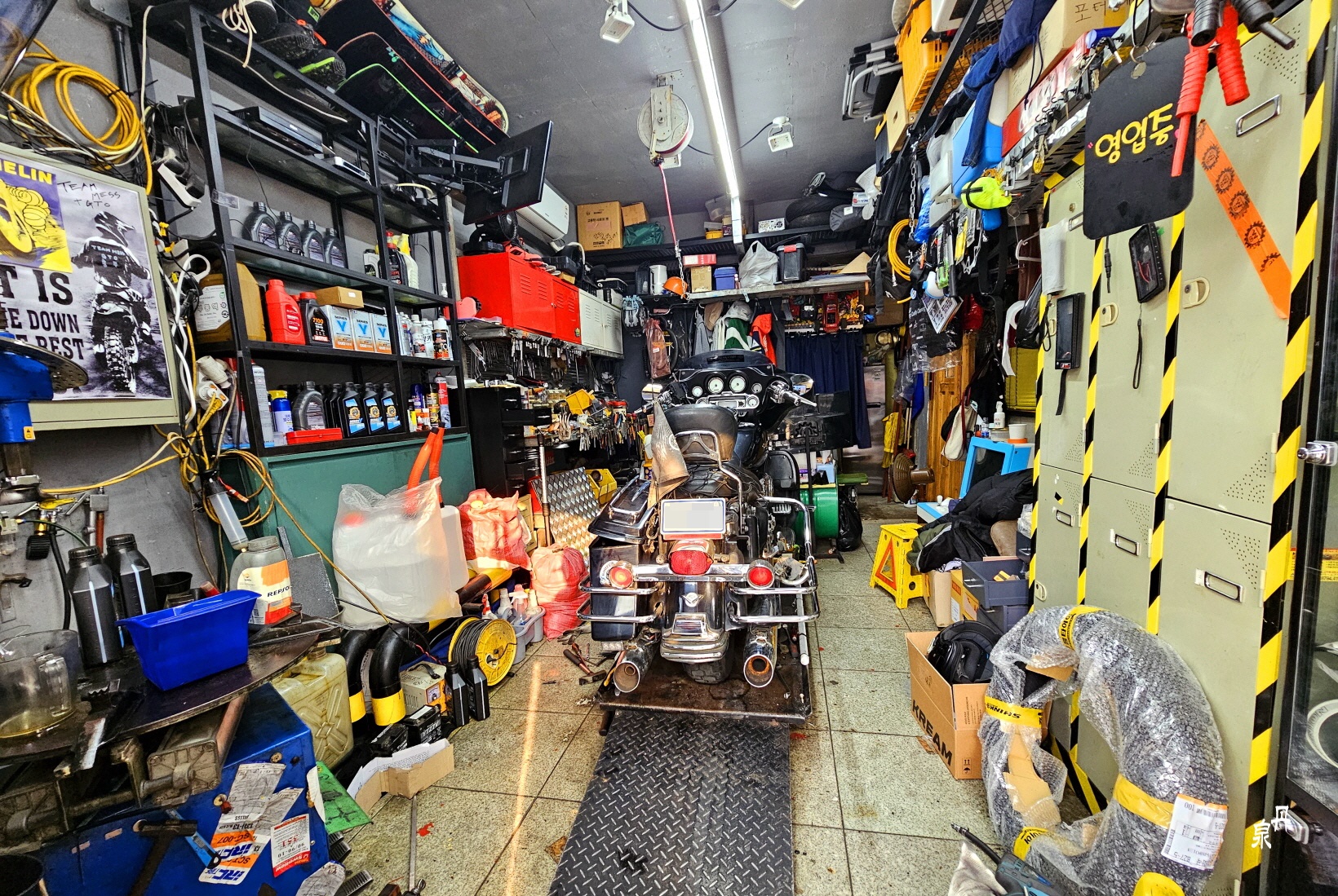 유명한 할리 데이비슨 오토바이를 수리하는 걸 보니 실력을 인정받은 수리업체인 것 같다