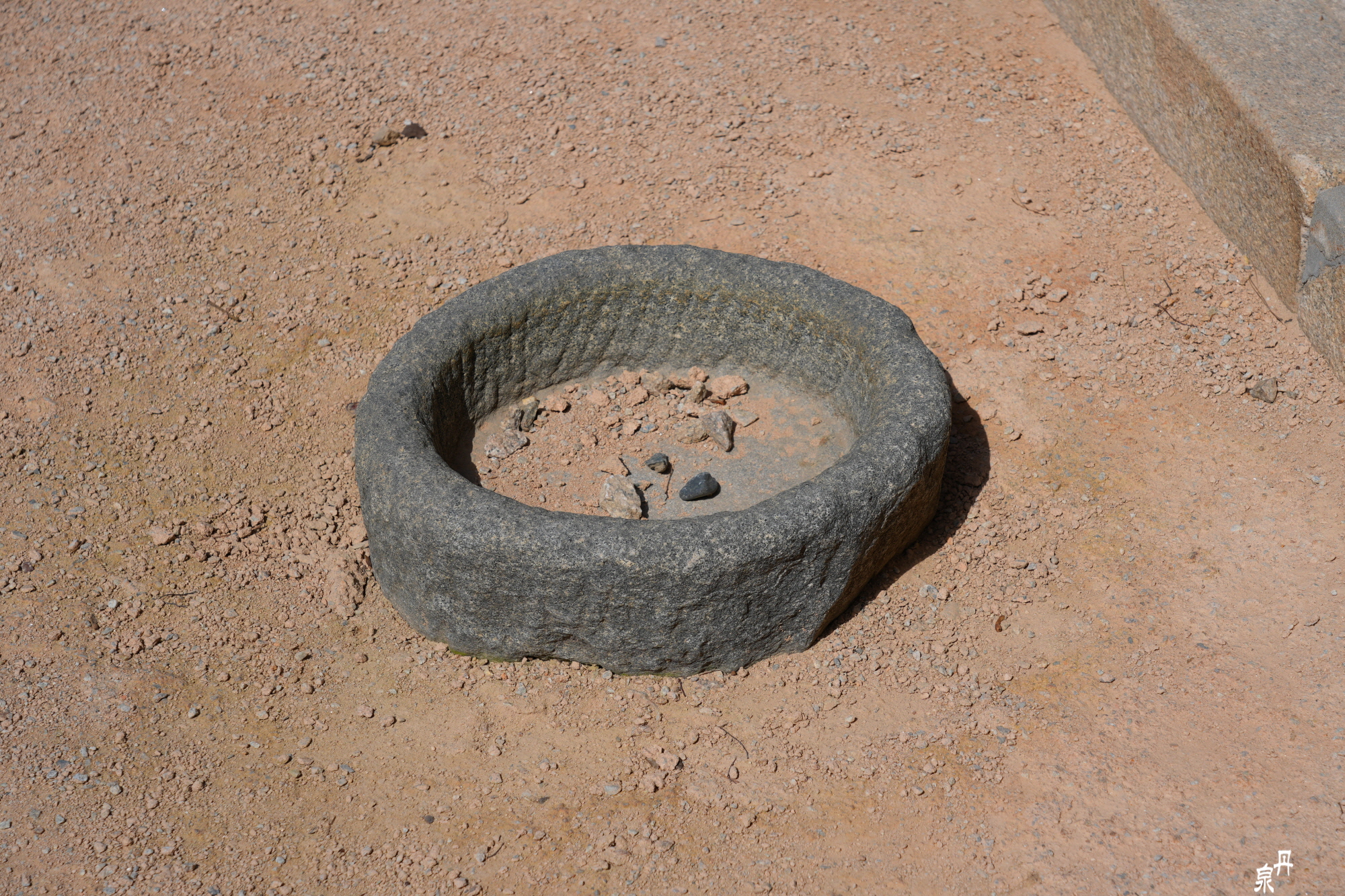 땅바닥에 돌덩어리가 있어서 무엇에 쓰는 물건인가 하였다가 위를 보니 알았다