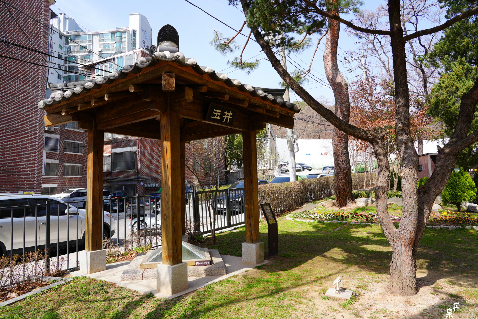 마당에 있는 우물, 경후 김단희의 글씨 옥정 현판이 달려있다