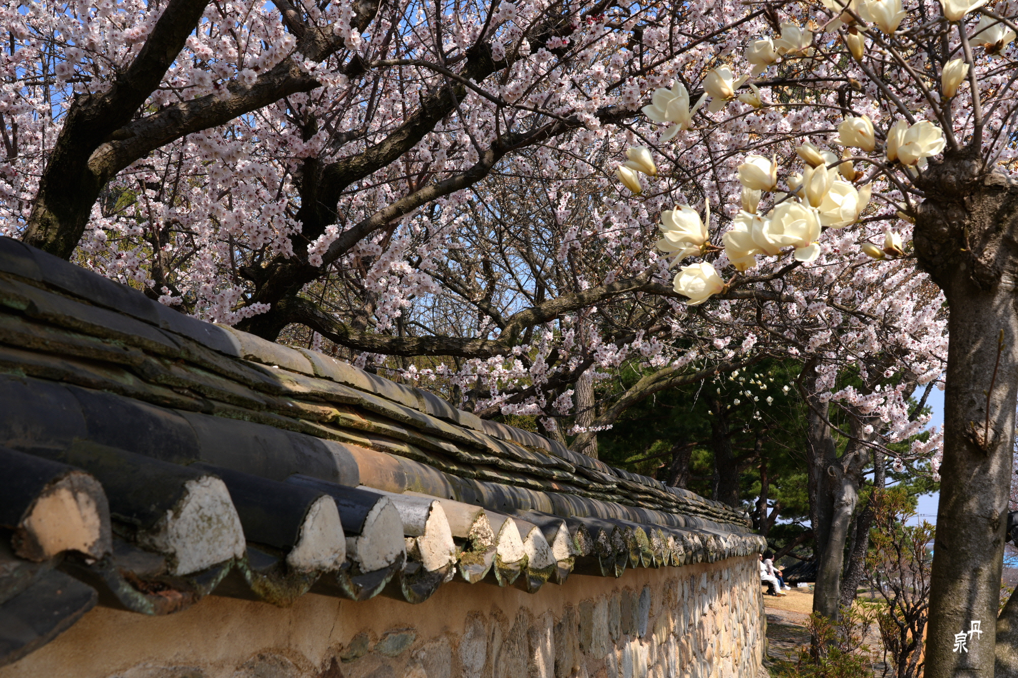 돌담장위에 매화와 목련이 우리의 멋을 보여준다