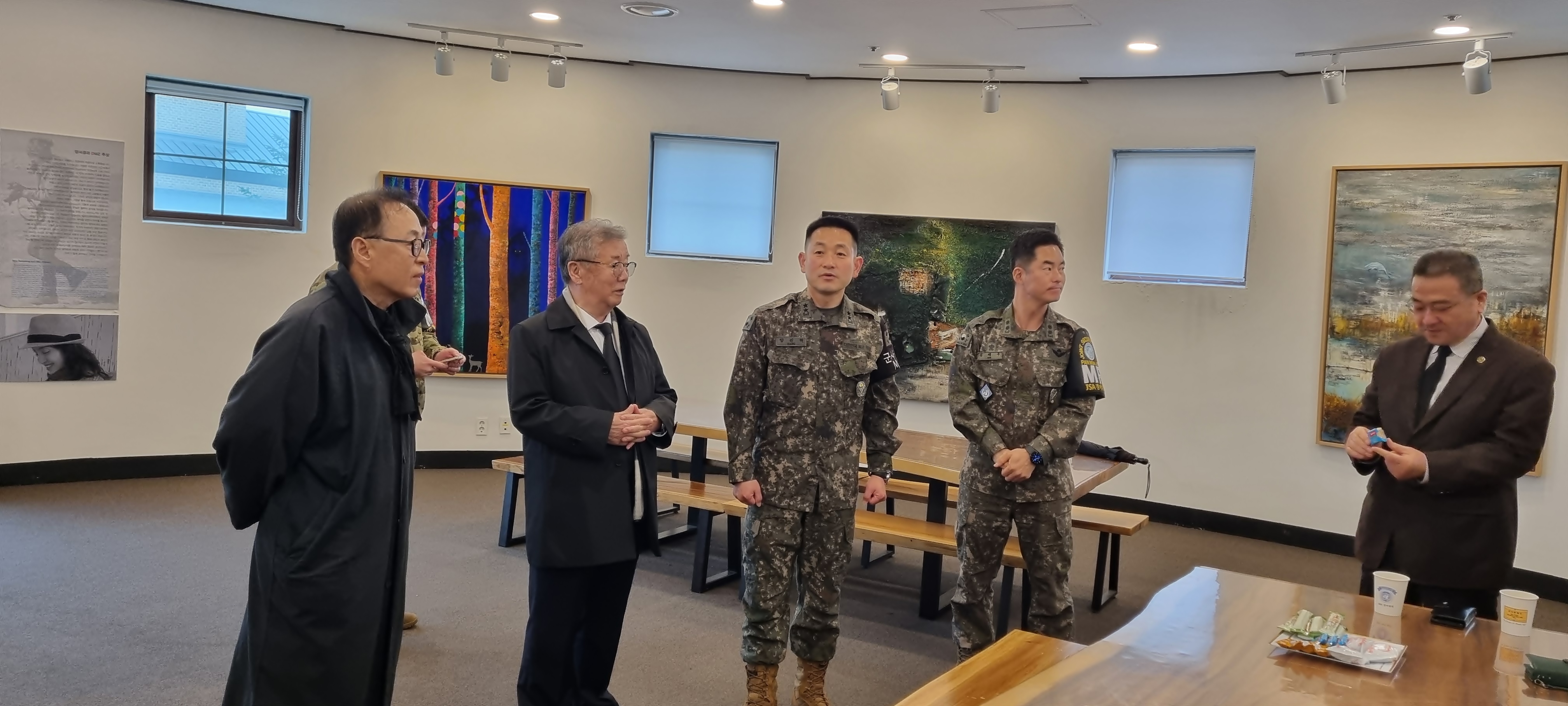 육군 제1사단장 양진혁 소장, JSA대대장.전우회 관계자와 담소 시간