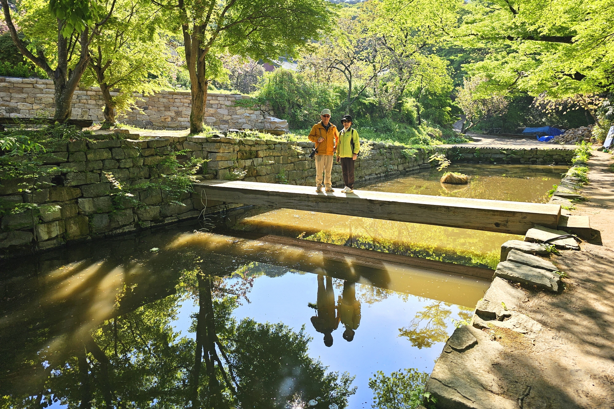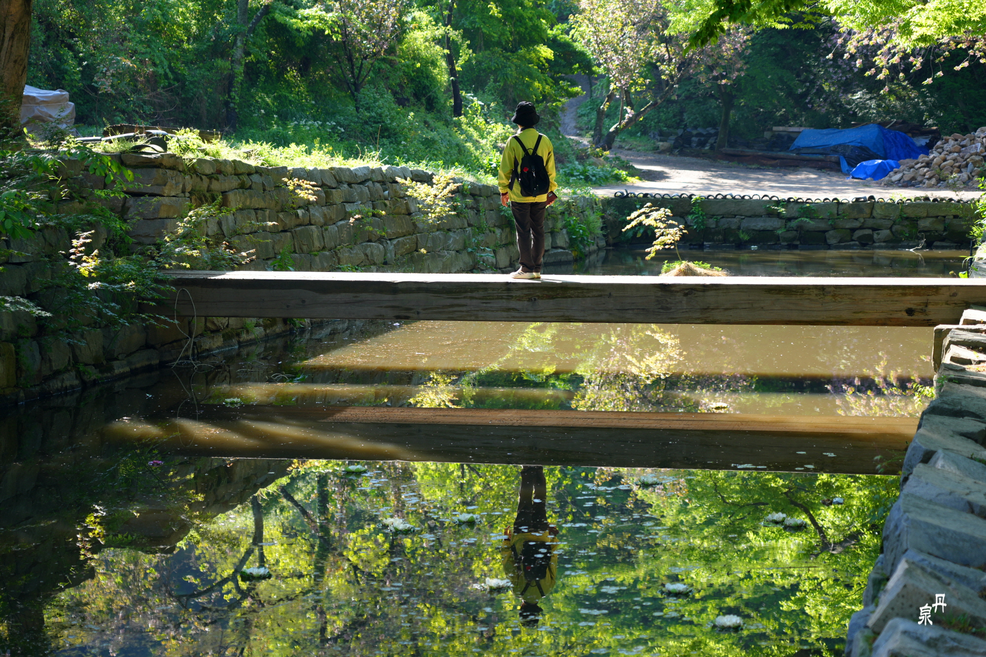 개심사에서 유명한 외나무다리 사진 포인트가 이른 아침이라 한가하여 여유롭게 인증샷을,,,