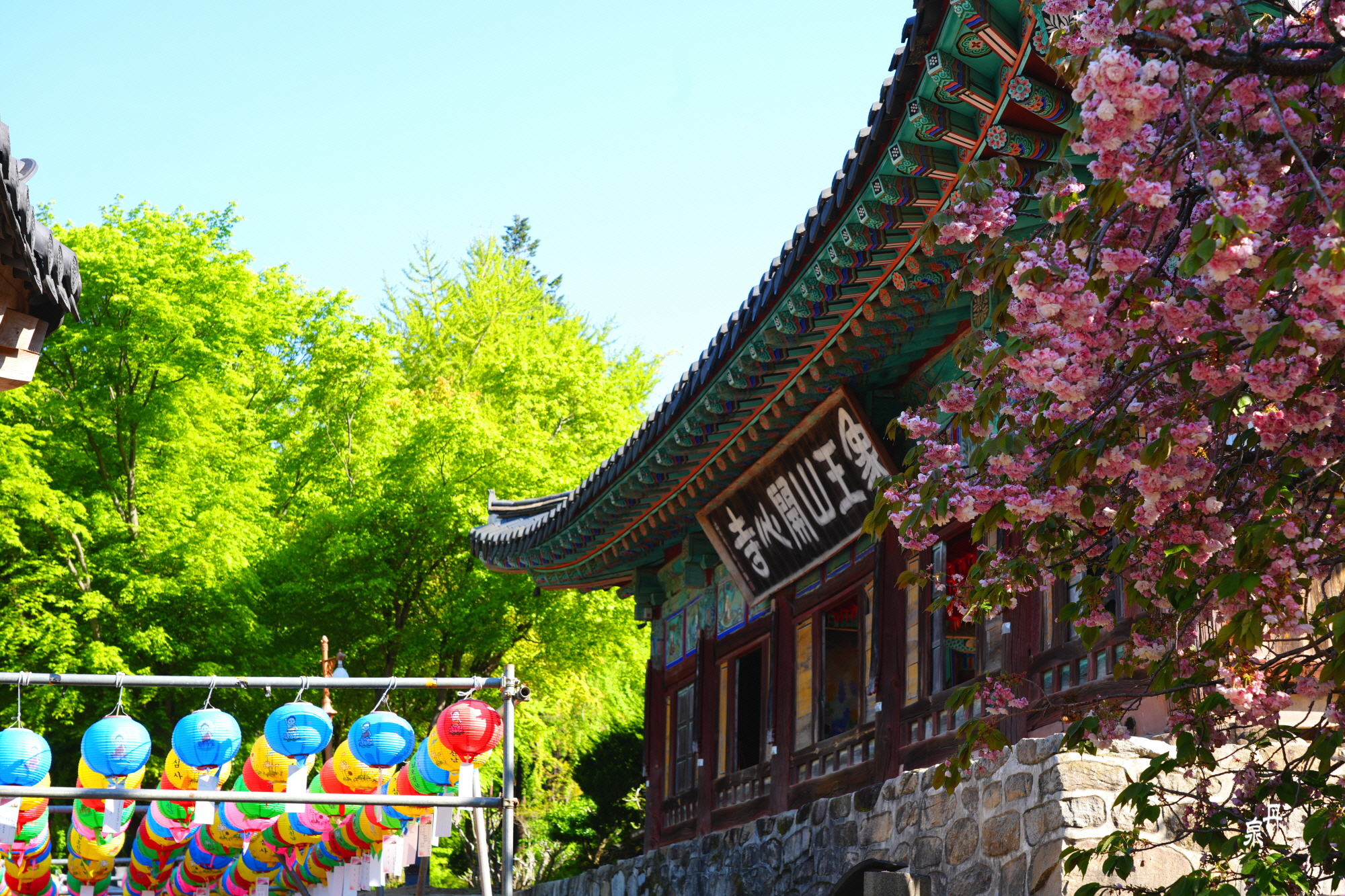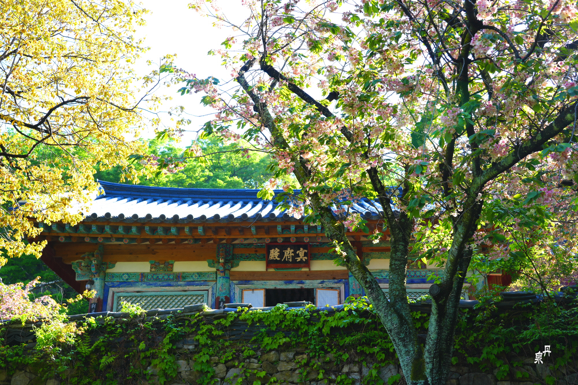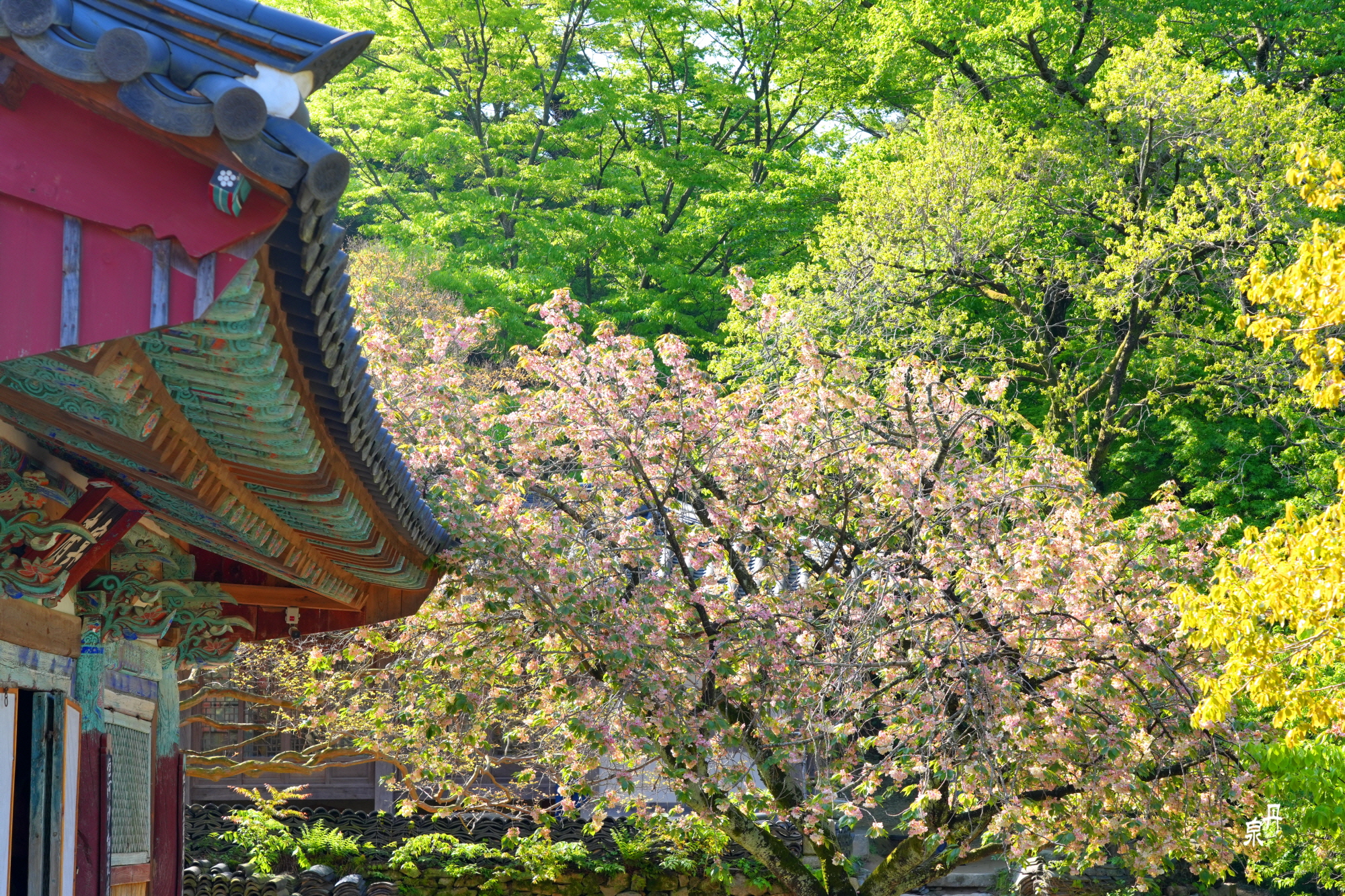 충남 개심사의 왕벚꽃과 청벚꽃이 유명한데 두 꽃이 피는 시간차가 있어
