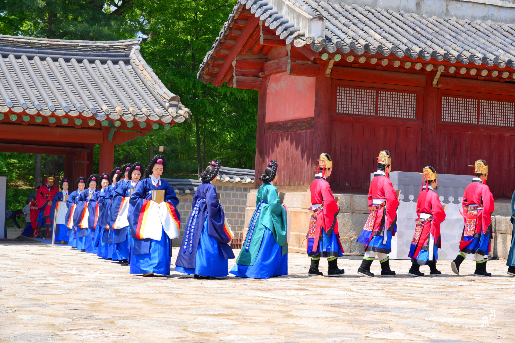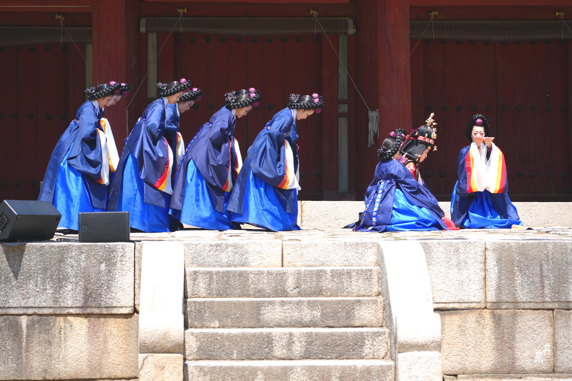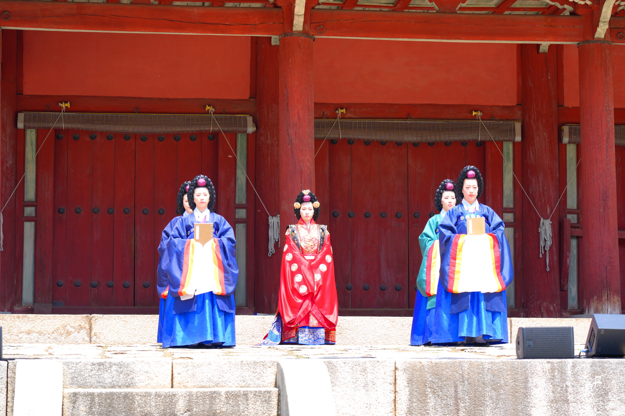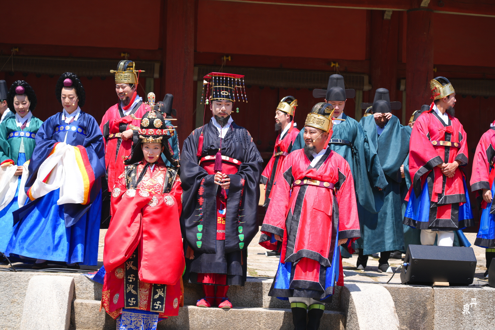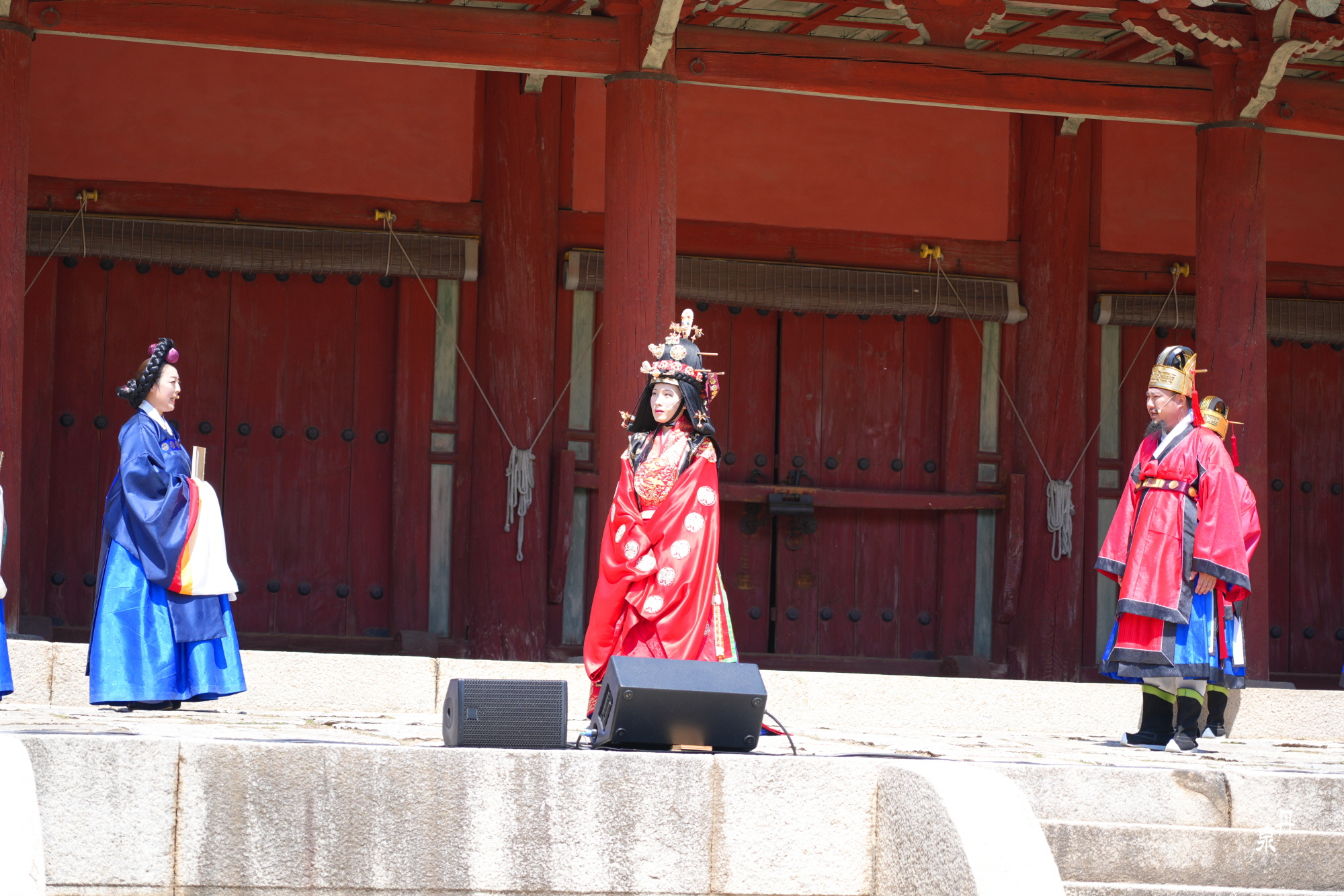 남자 신하들은 왕비의 얼굴을 볼 수없기 때문에 문무백관들이 퇴장을 하고 왕비가 들어온다