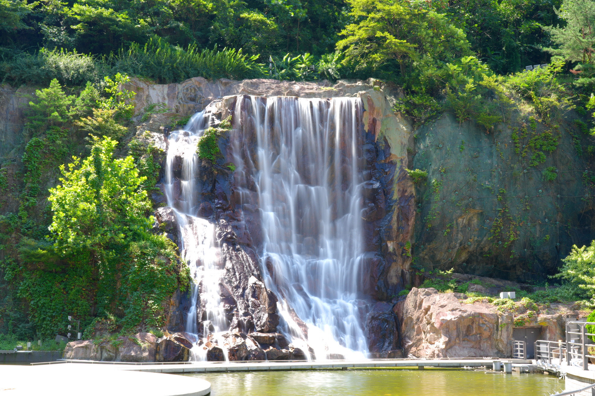 서울시 면목동 용마공원의 용마폭포는 인공폭포지만 세 줄기에서 내뿜는 폭포를 보고 소리를 듣고 있으면 잠시 더위를 잊을 수 있습니다