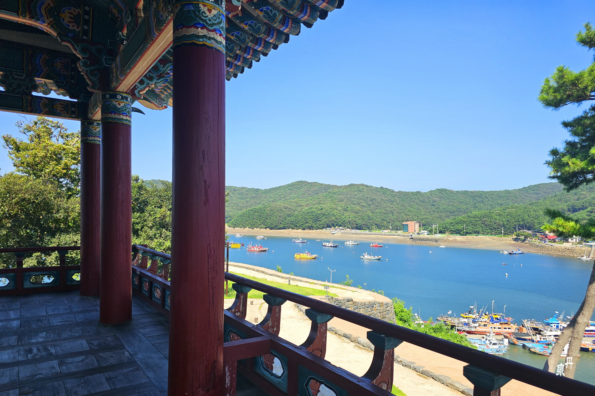 뜨거운 날인데 정자에는 바닷바람이 불어 오랜만에 시원함을 느낀다