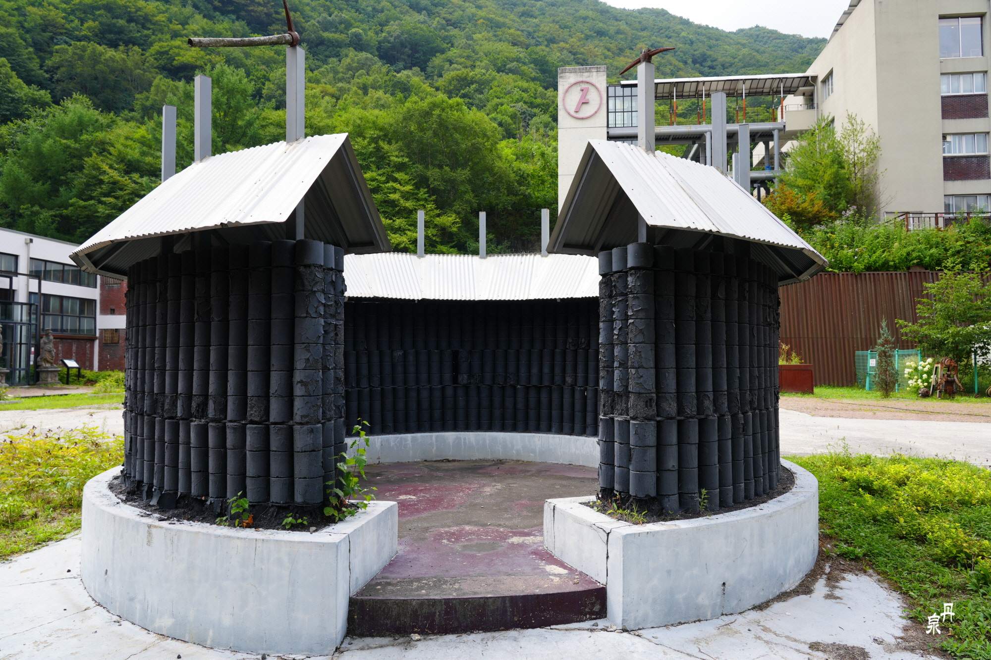 연탄으로 쌓아 만든 포토존 같은데 연탄이 허물어지는 것 같아 들어가지 못하겠다