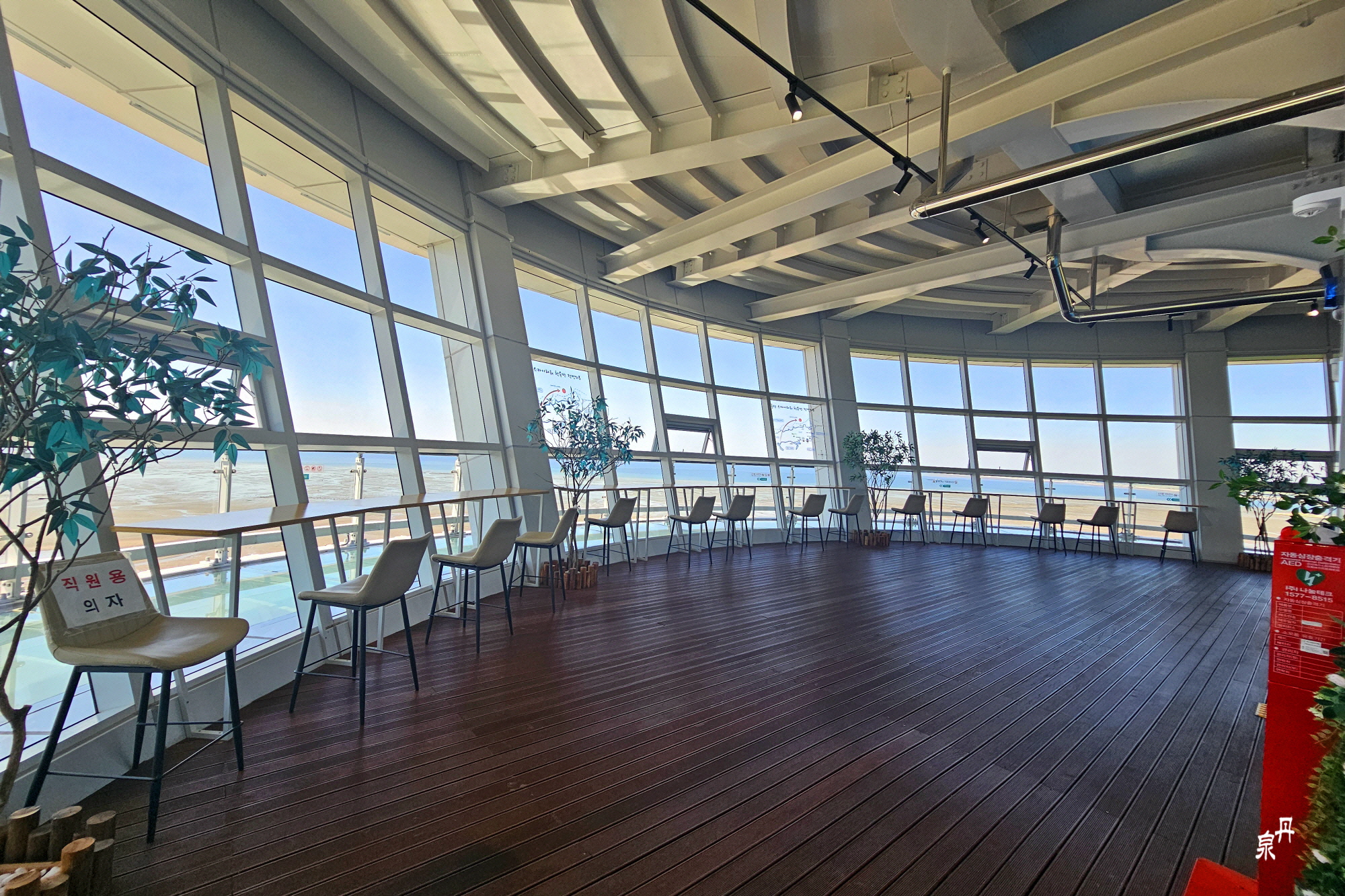 실내에서 편하게 서해 바다 및 주변을 볼 수 있다