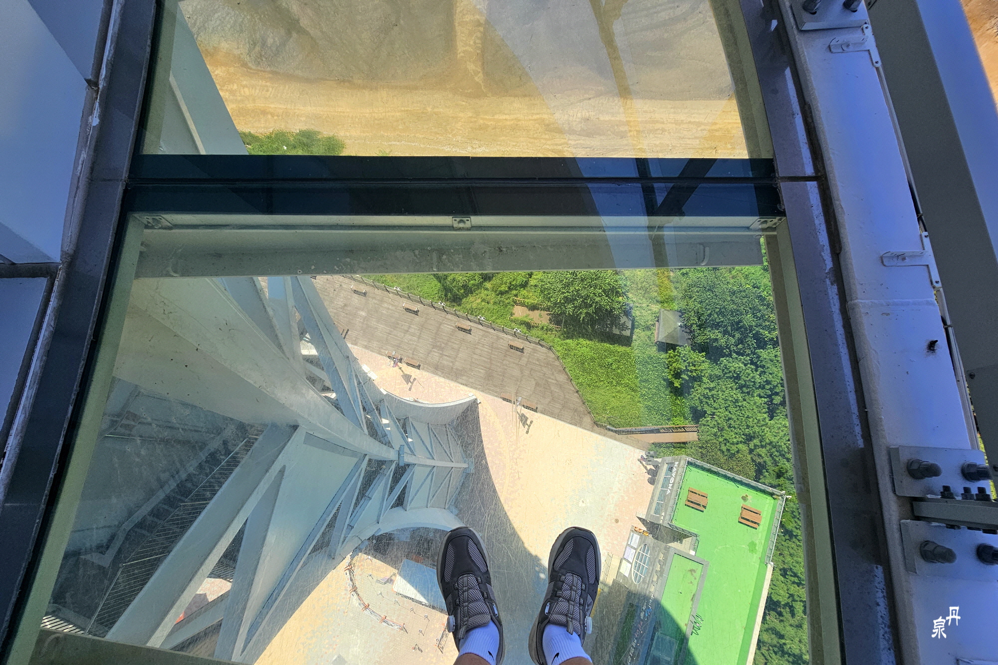 밖으로 나가면 아래가 훤히 보이는 투명유리로 되어있어 스릴을 느낄 수 있다