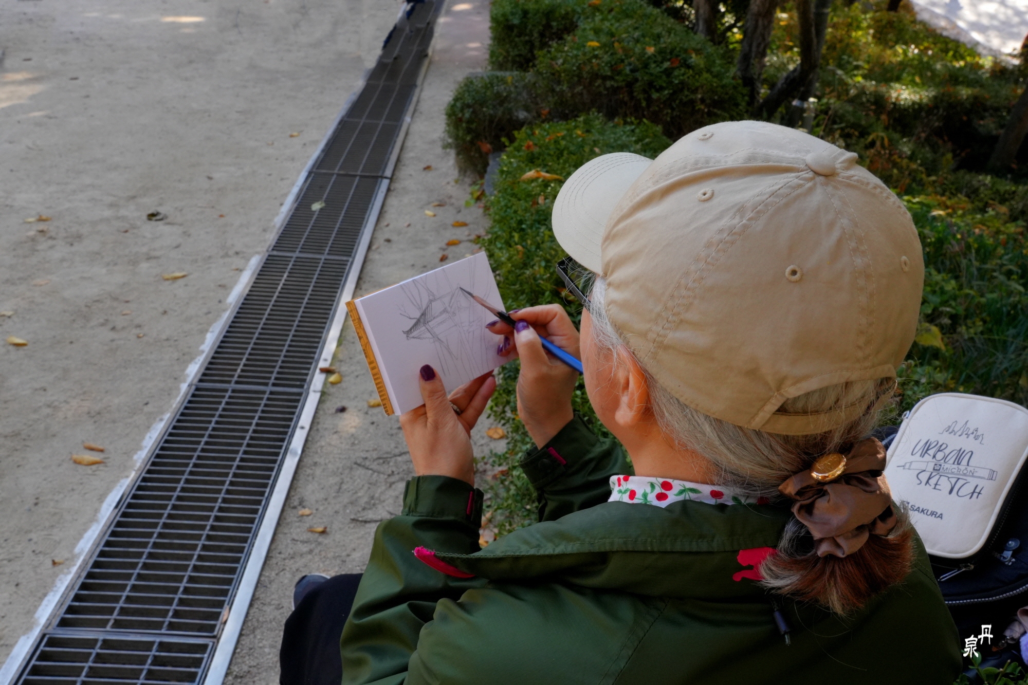 연필로 그림을 그리는 백발의 할머니(?) 뒷모습이 아름다워 양해를 구하고 찰칵