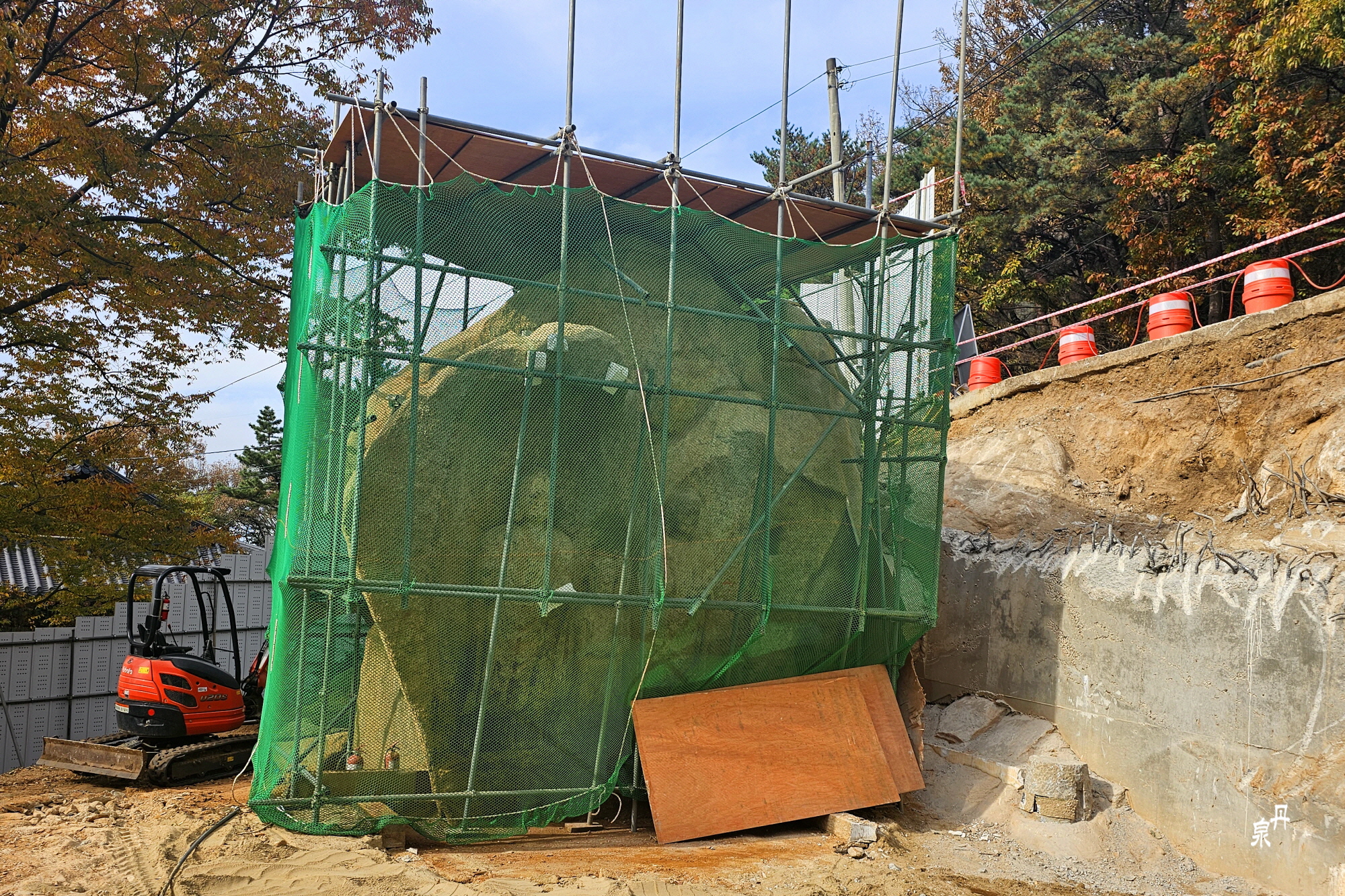 주변 공사 중이라서 울타리로 막아 출입금지라 볼 수가 없단다