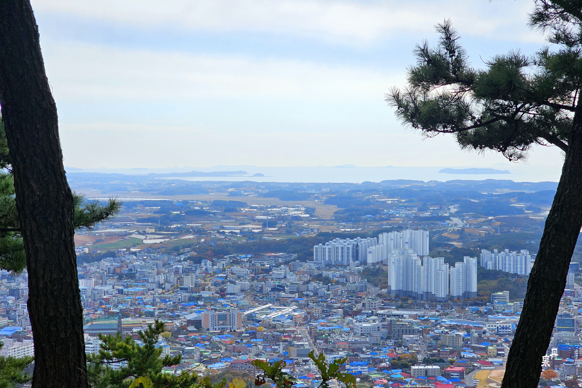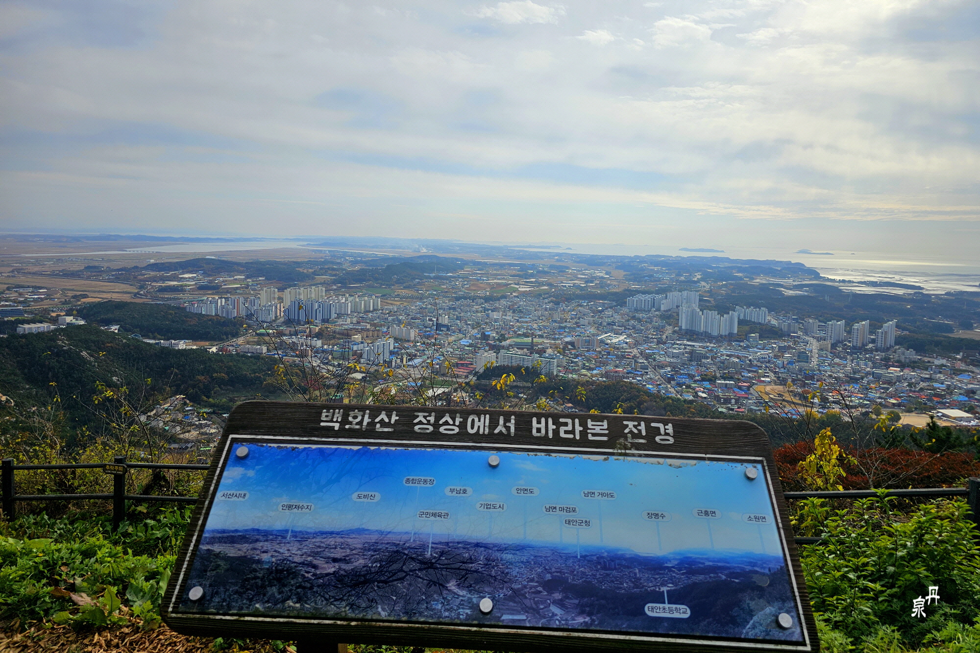 태안 시내와 서해바다가 보인다