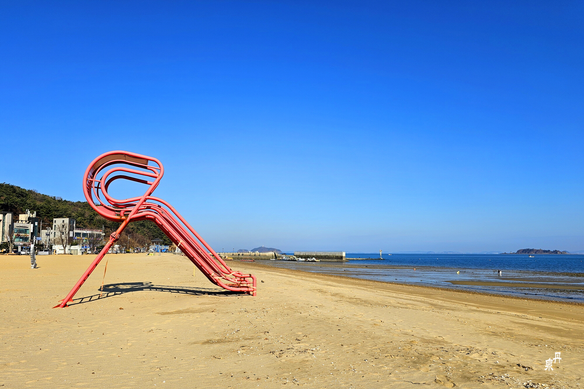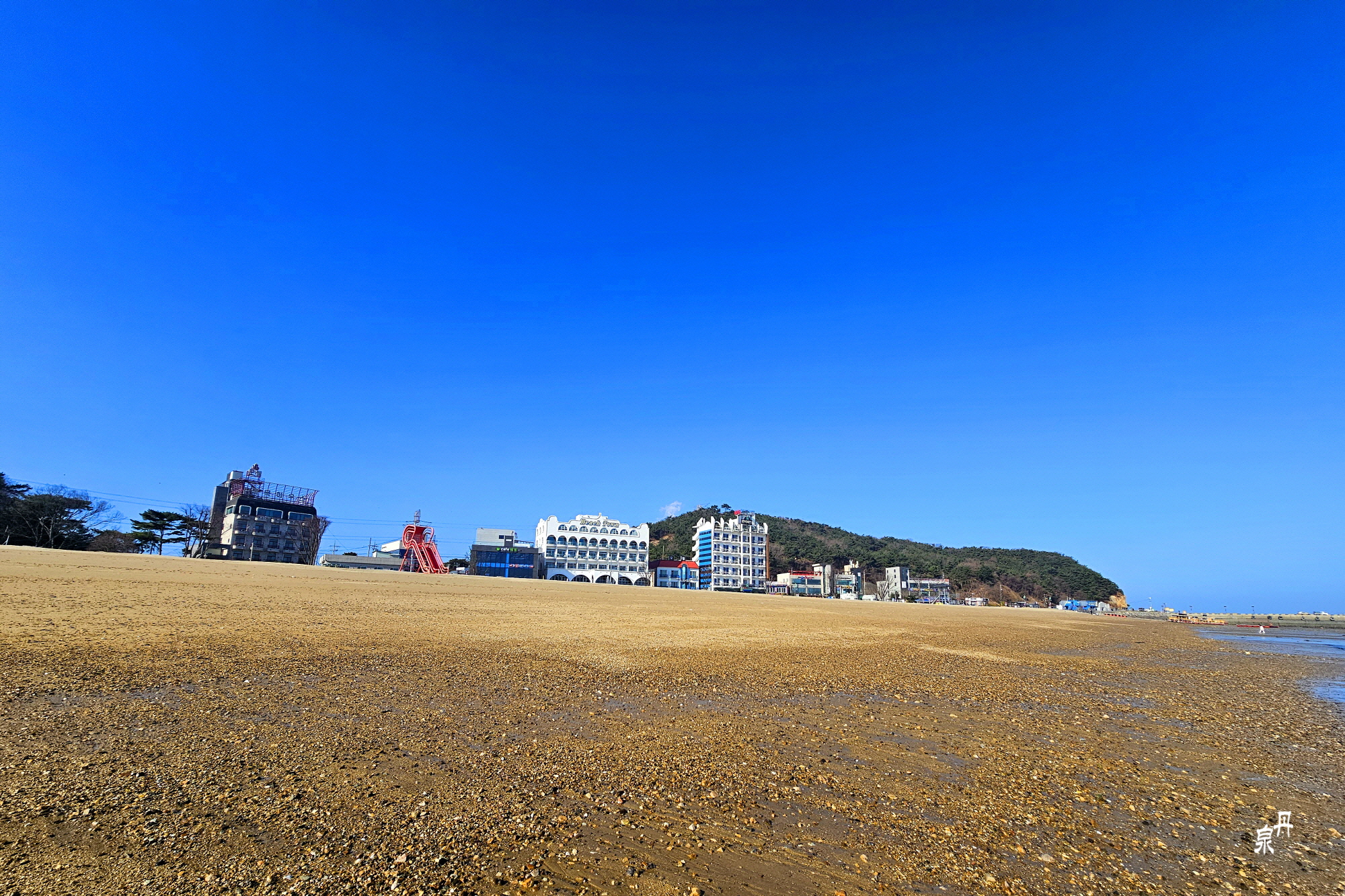 여름 서해안 해수욕장으로 유명한 왜목마을 해변의 겨울 모습