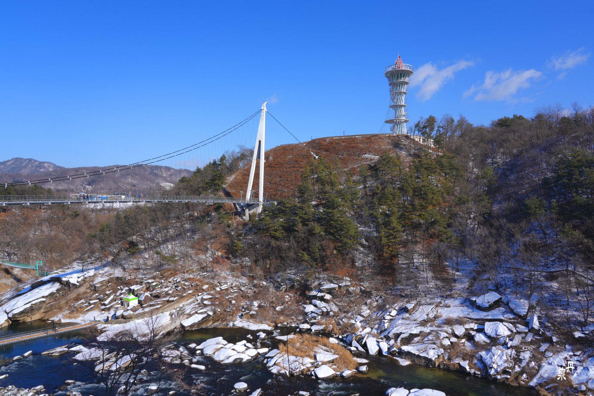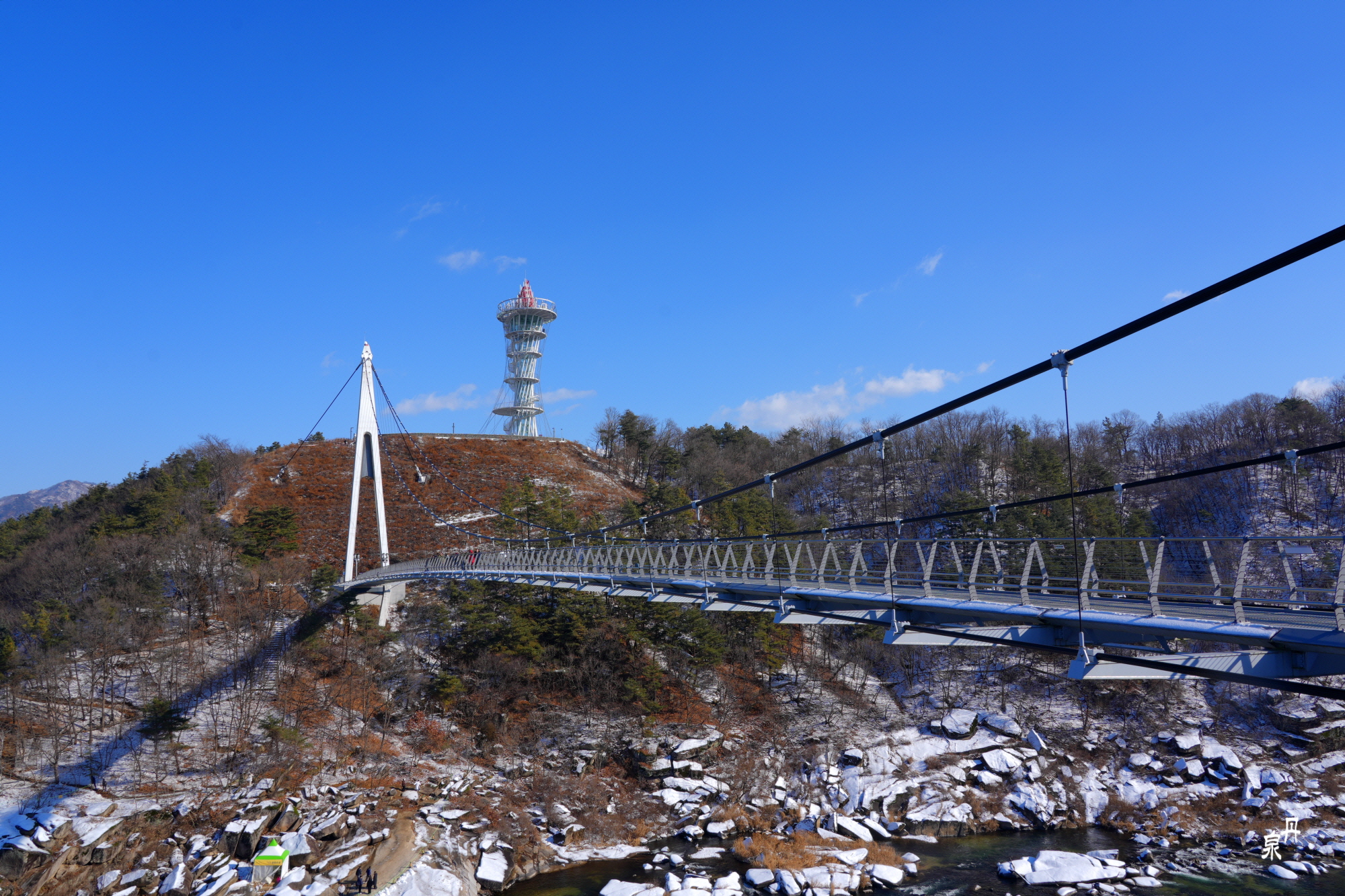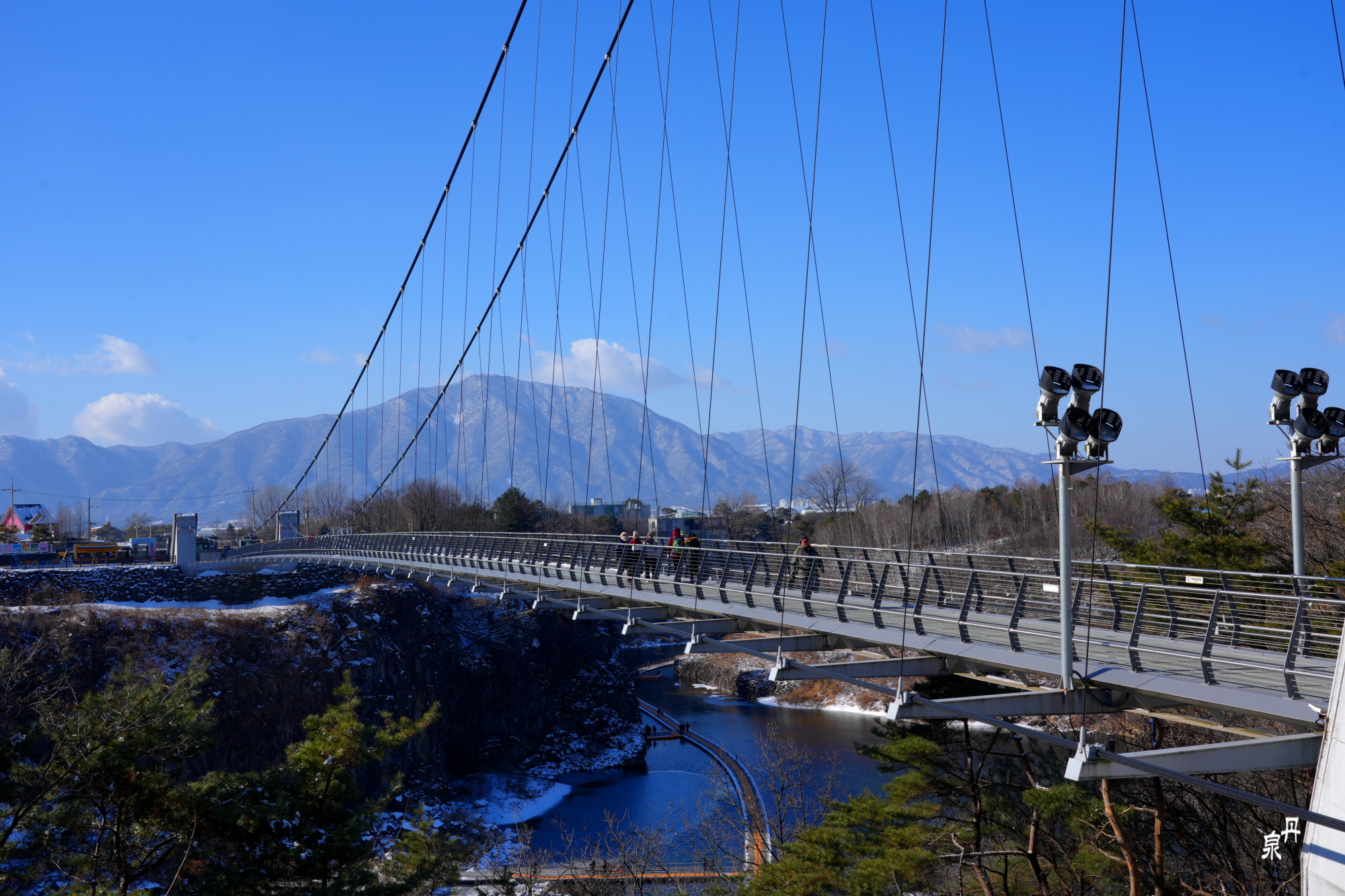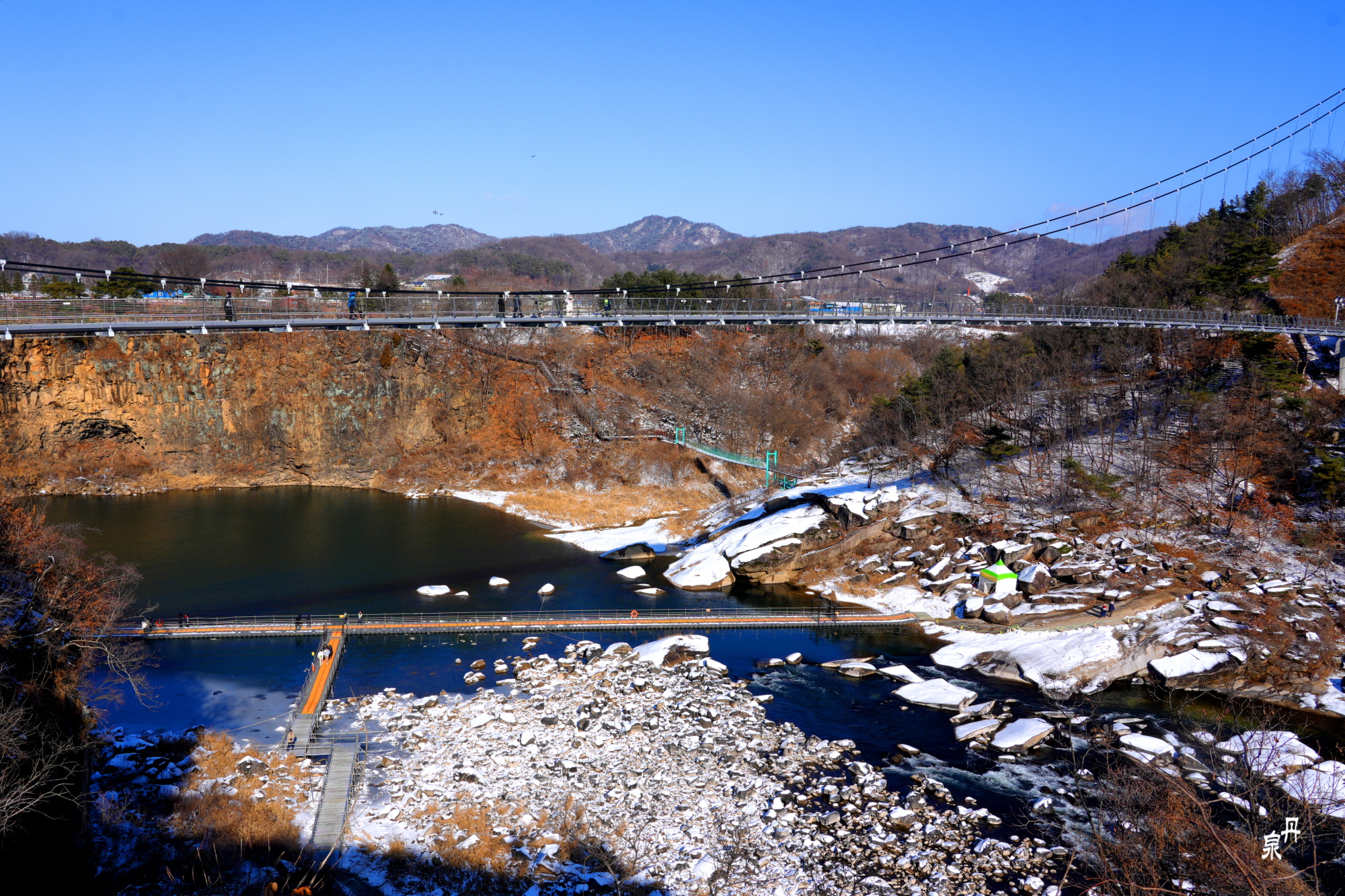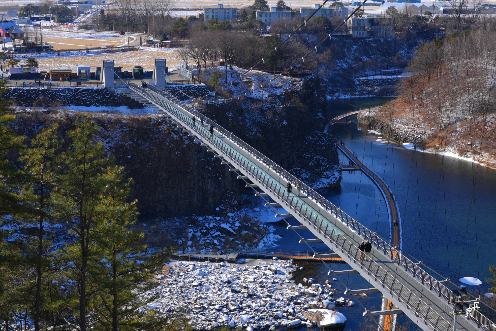 한탄강의 은하수교는 길이 180m, 폭 3m의 1 주탑 비대칭 현수교이다