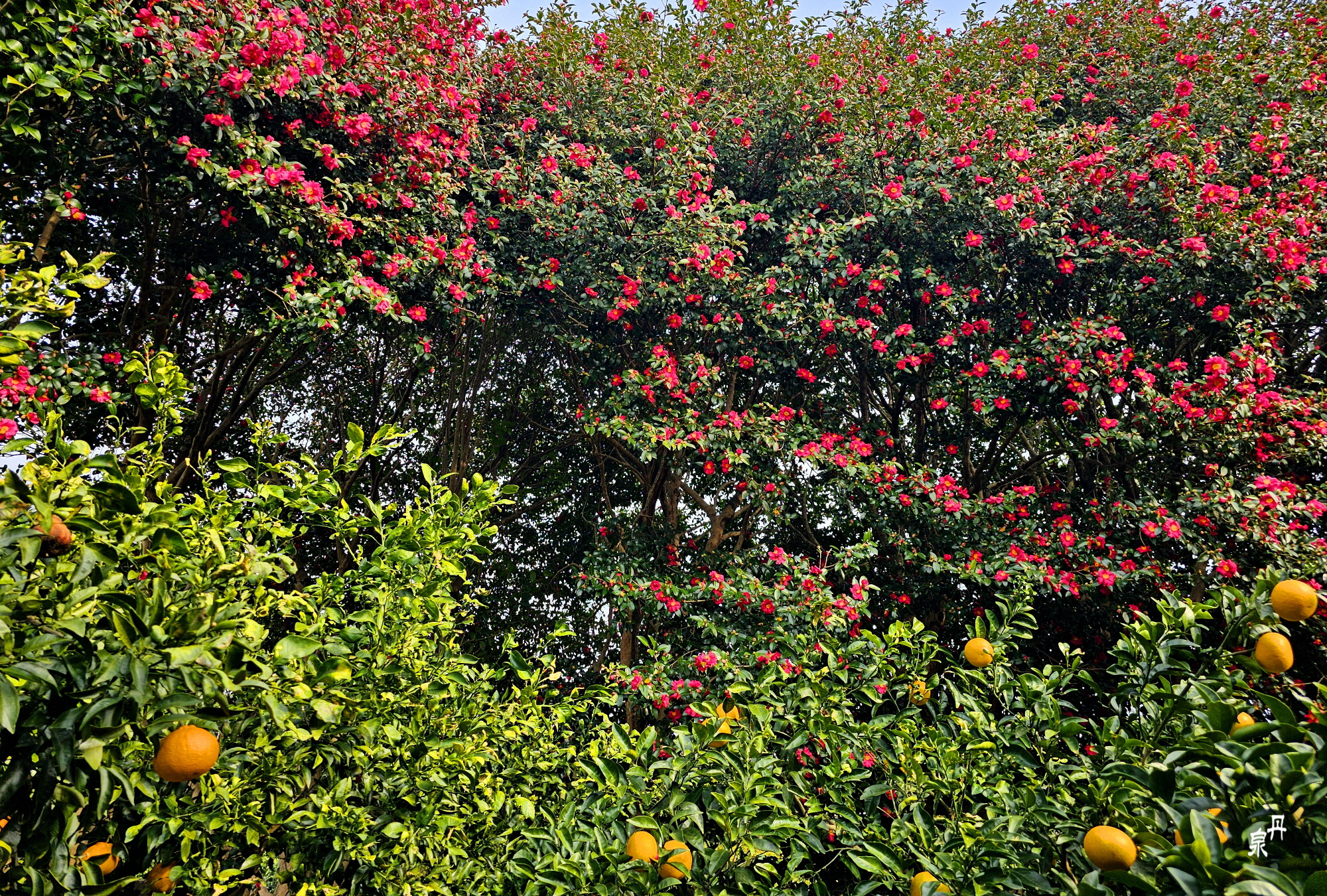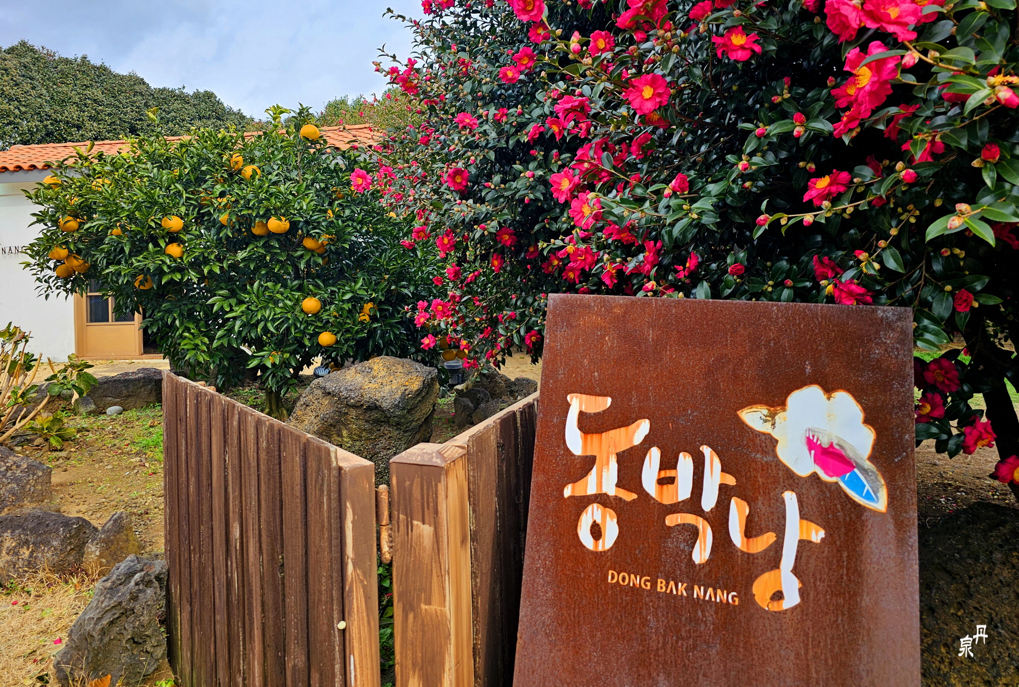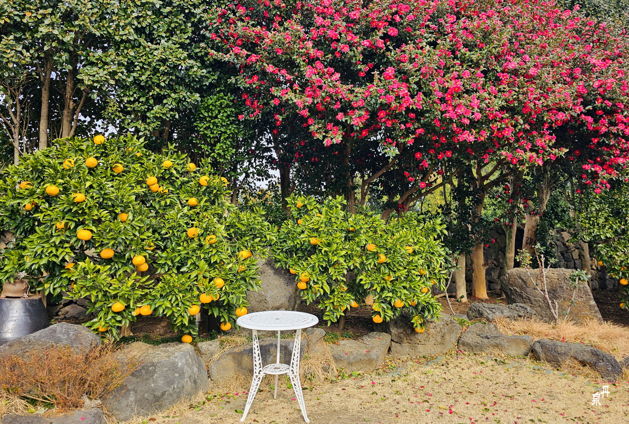 붉은 동백꽃과 노란 귤이 이곳이 제주도라고 말 하는 것 같다