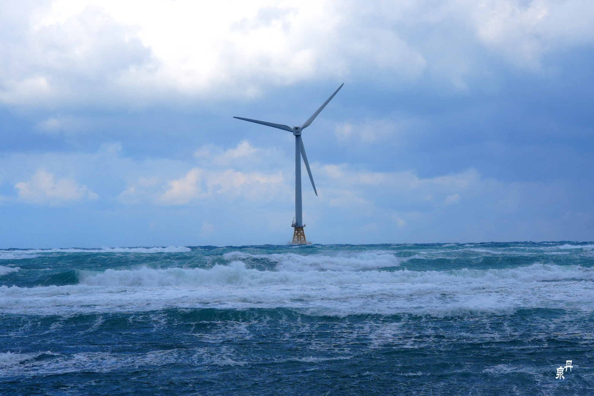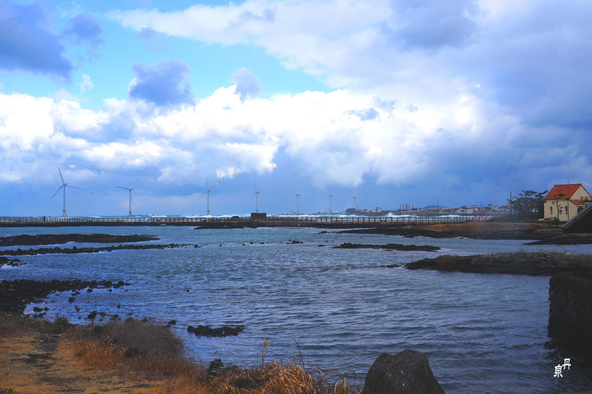 바다 가운데 다리가 있어 갈 수 있으나 이 날 바람이 너무 강하게 불어 접근하기가 위험한데