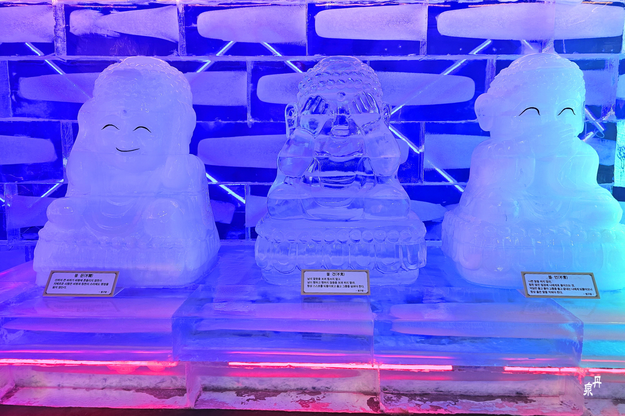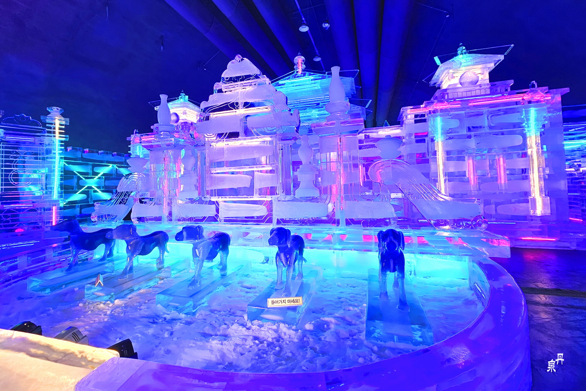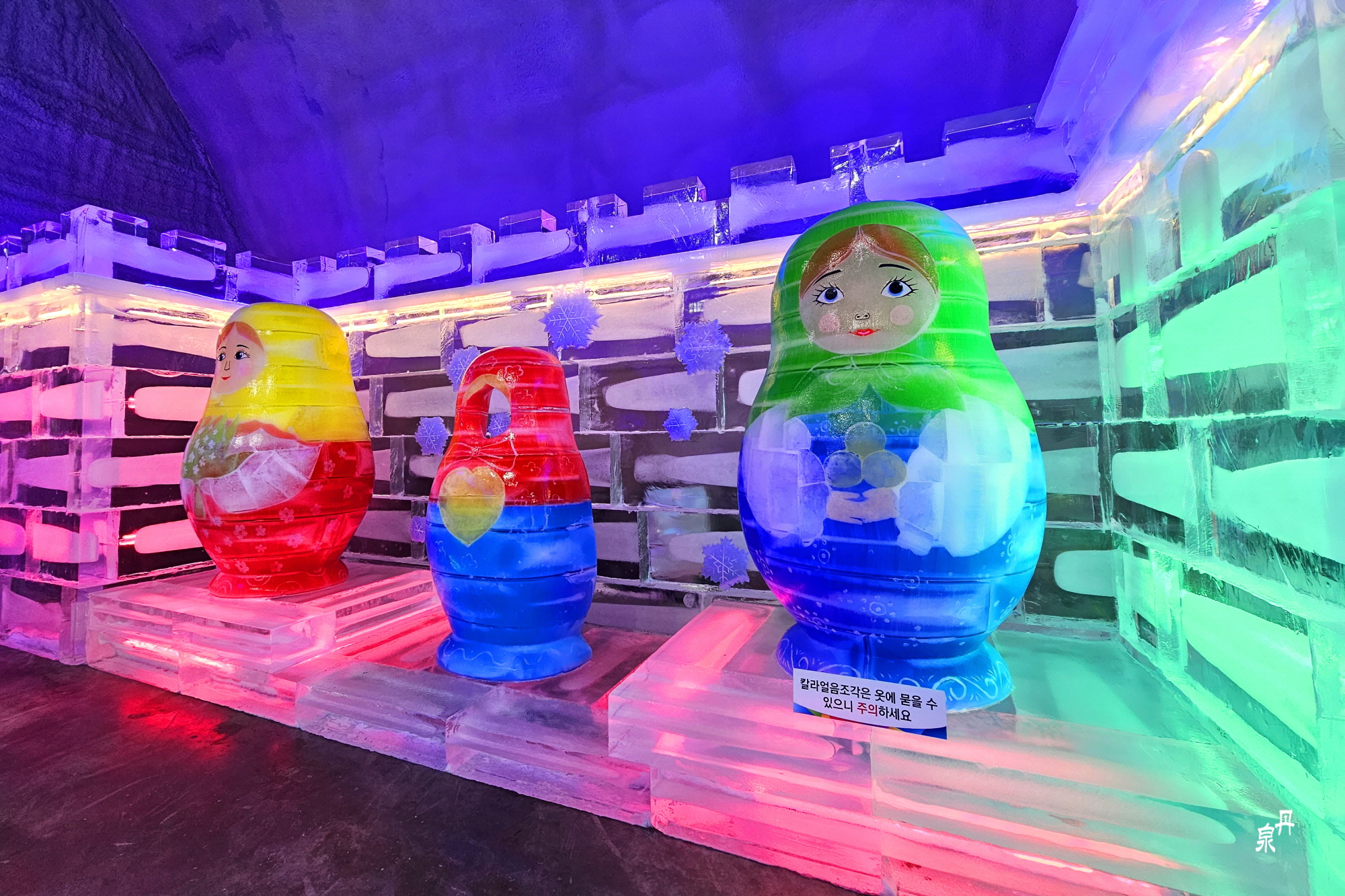중국인 관광객이 특히 많았는데 알고 보니 여기 있는 얼음 조각품들은 중국 하얼빈 빙등제의 중국 조각가 수십 명이 한 달 동안 만들어서 그렇다고 한다