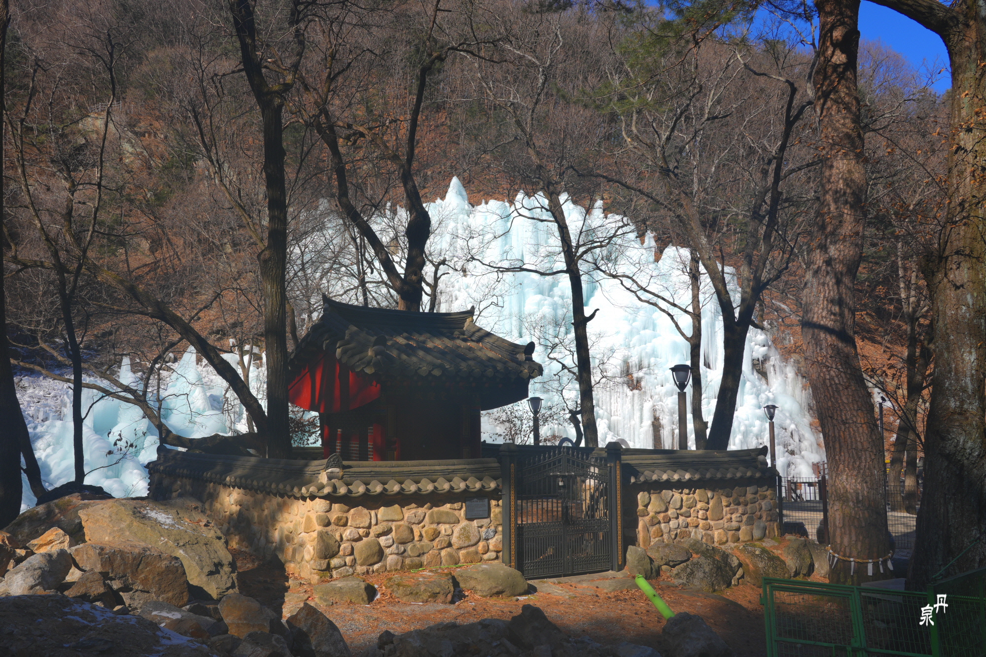 겨울이 오면 계곡에 인위적으로 얼음폭포를 만들어 볼거리를 제공하고 있습니다