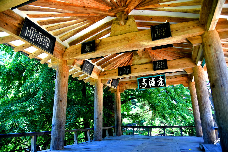 경렴정 내부, 초서체 경렴정 글씨는 조선중기 문인 고산 황기로가 스승 퇴계앞에서 쓴 글