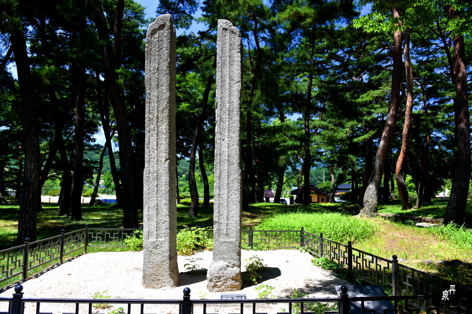 서원 입구의 당간지주,당이란 불화 깃발을 걸던 지주 통일신라시대 작품