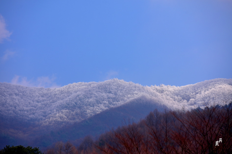 2월 말 인데 뒷산에 상고대가 활짝 폈다